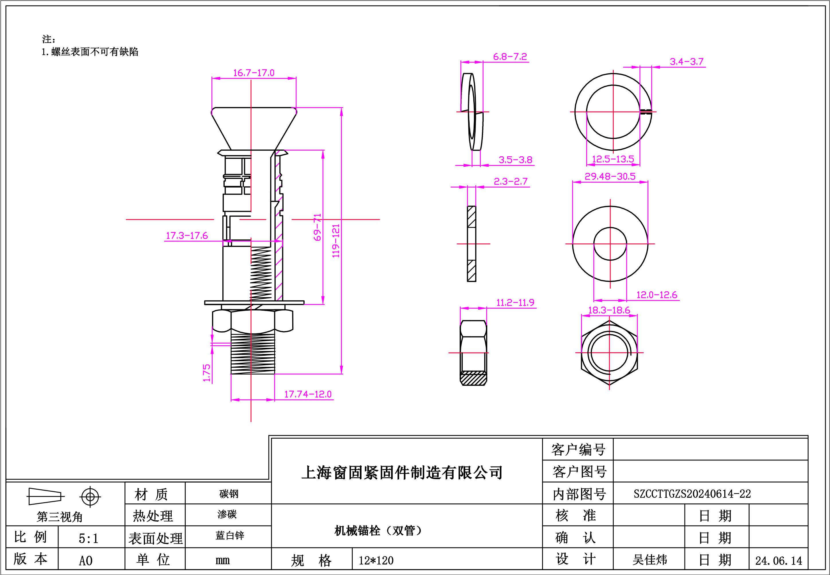 梅花沉头带筋细牙束尾自钻自攻螺钉