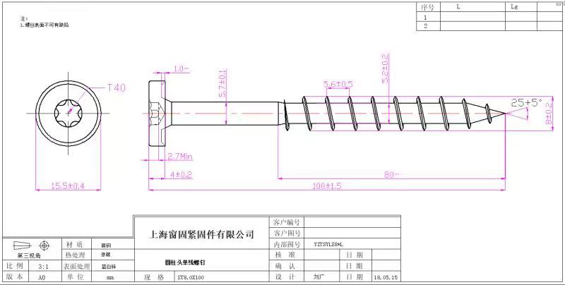 梅花薄圆柱头单线木螺钉~8*100~蓝白锌~(T40)
