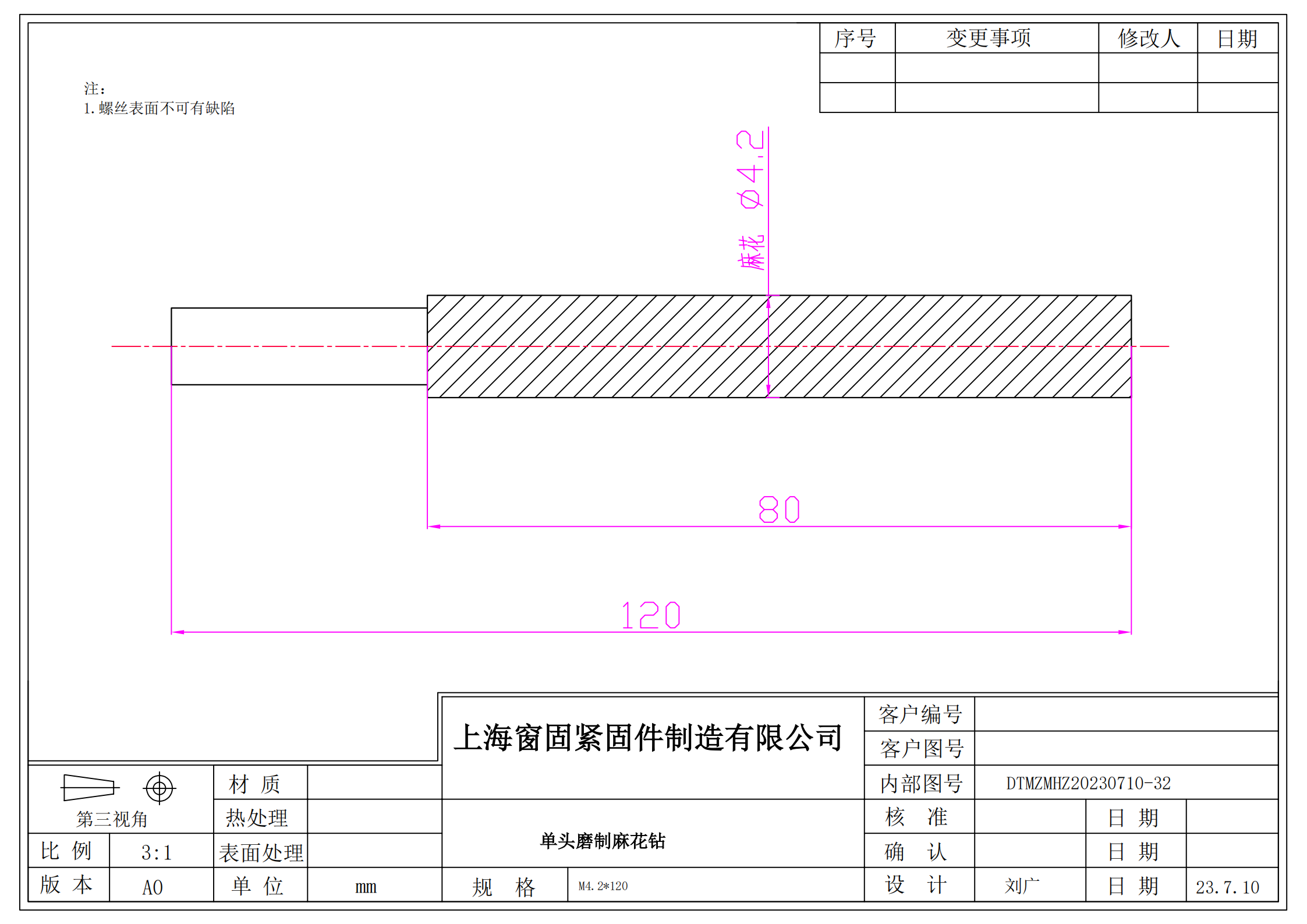 单头磨制麻花钻~4.2*120