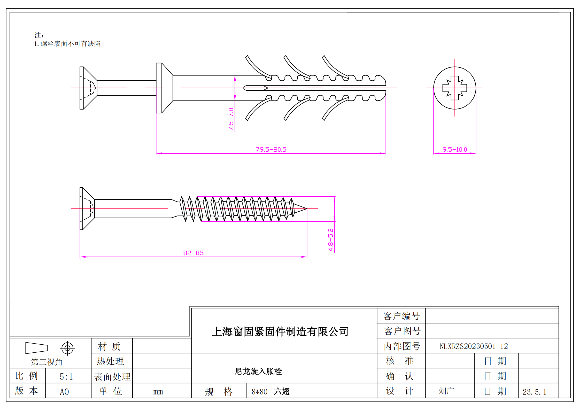 尼龙旋入式胀栓~8*80~(六翅,头径<10)