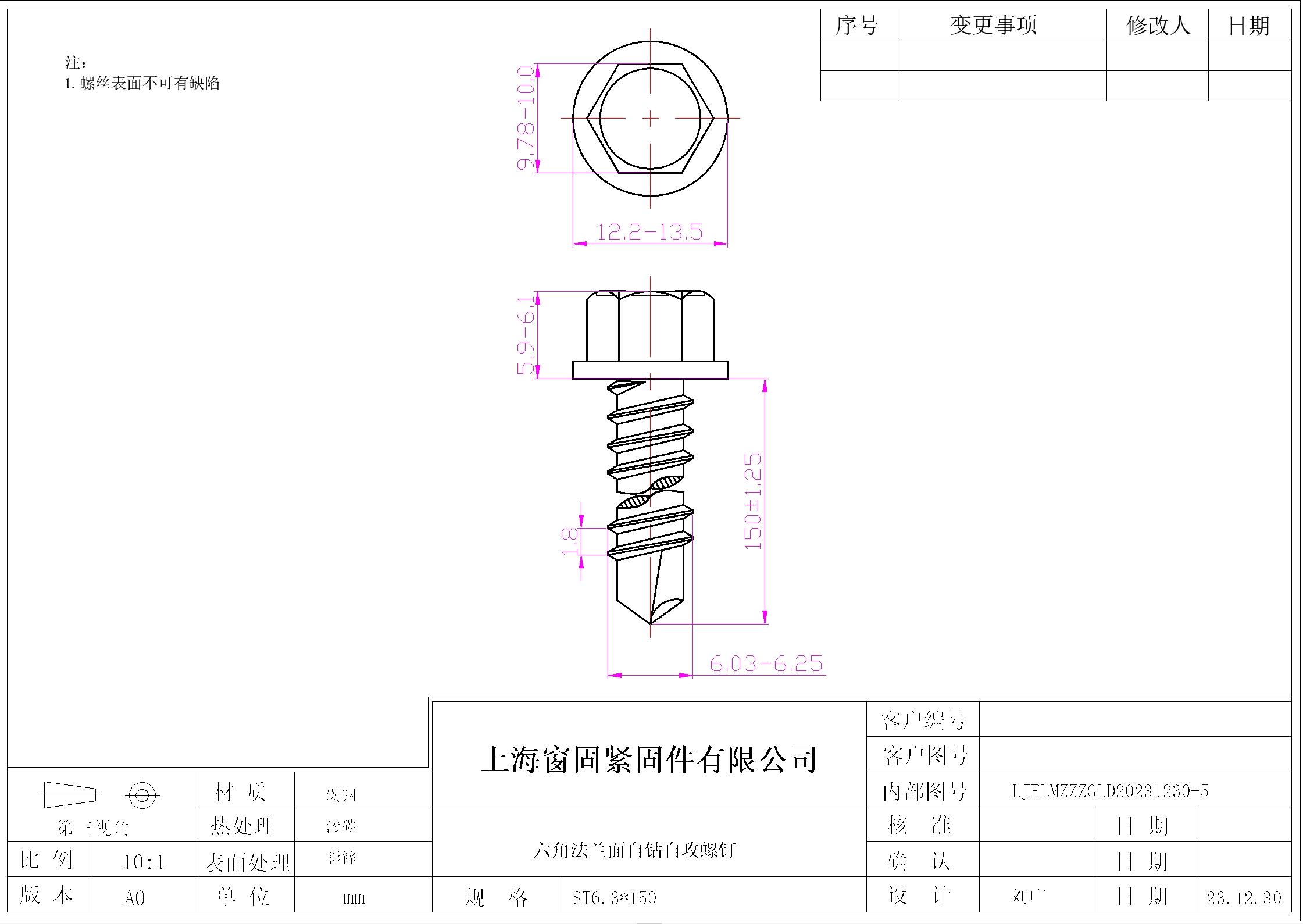 六角自钻自攻螺钉