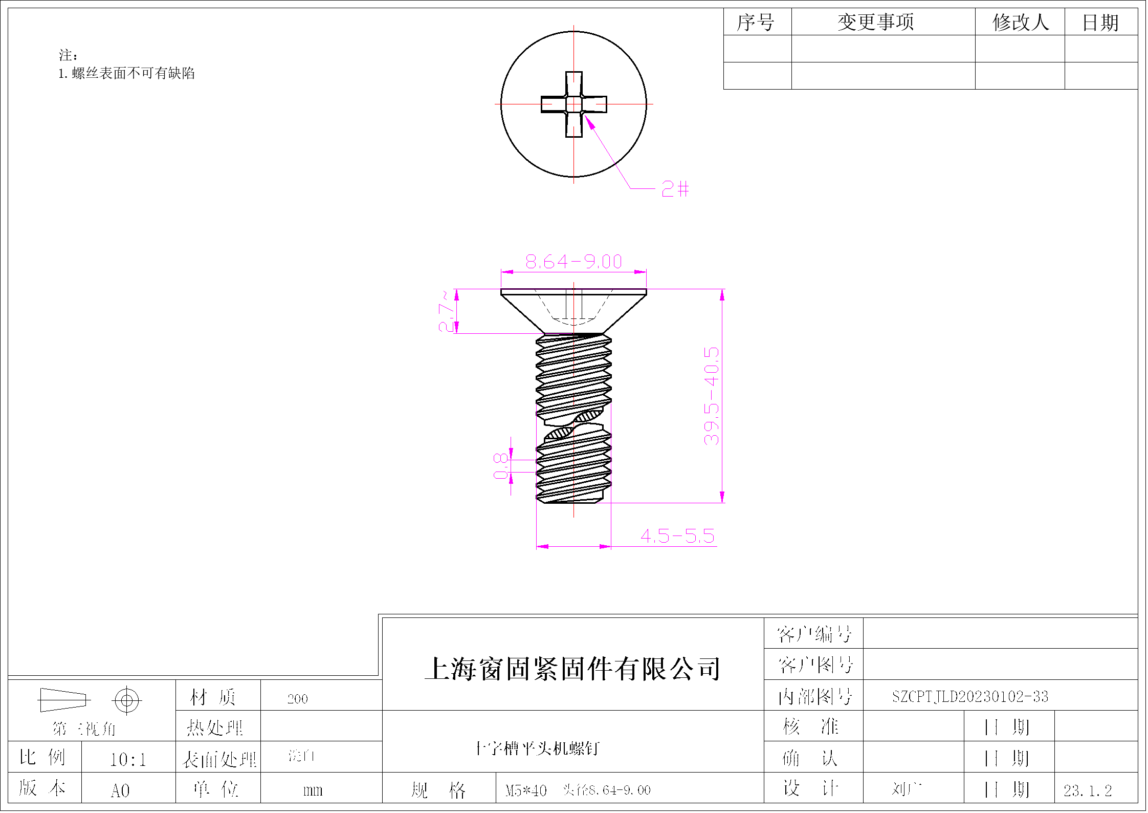 不锈钢200十字平头机螺钉~5*40~洗白~(头径8.64-9.0)