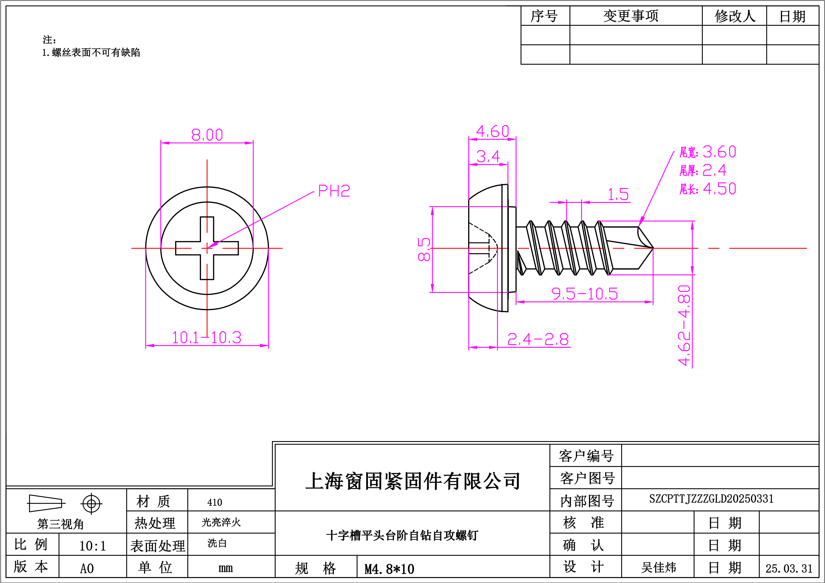 不锈钢410十字平头阶梯压板自钻自攻螺钉~4.8*10~洗白
