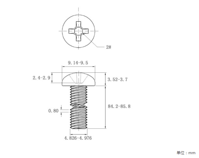 不锈钢304十字盘头机螺钉~5*85~洗白