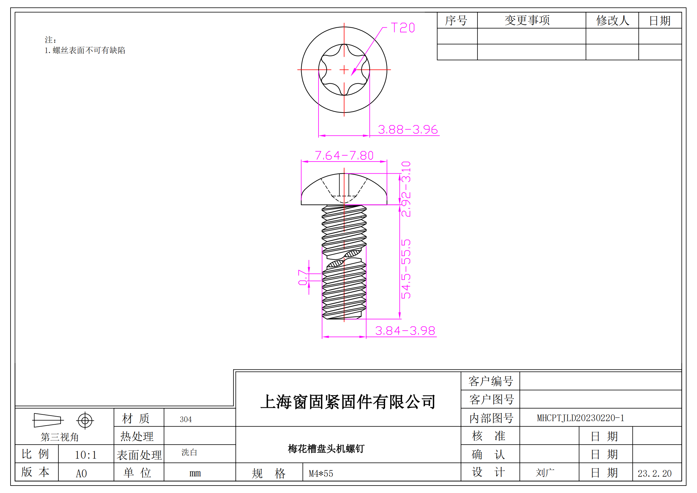 不锈钢304梅花盘头机螺钉~4*55~洗白