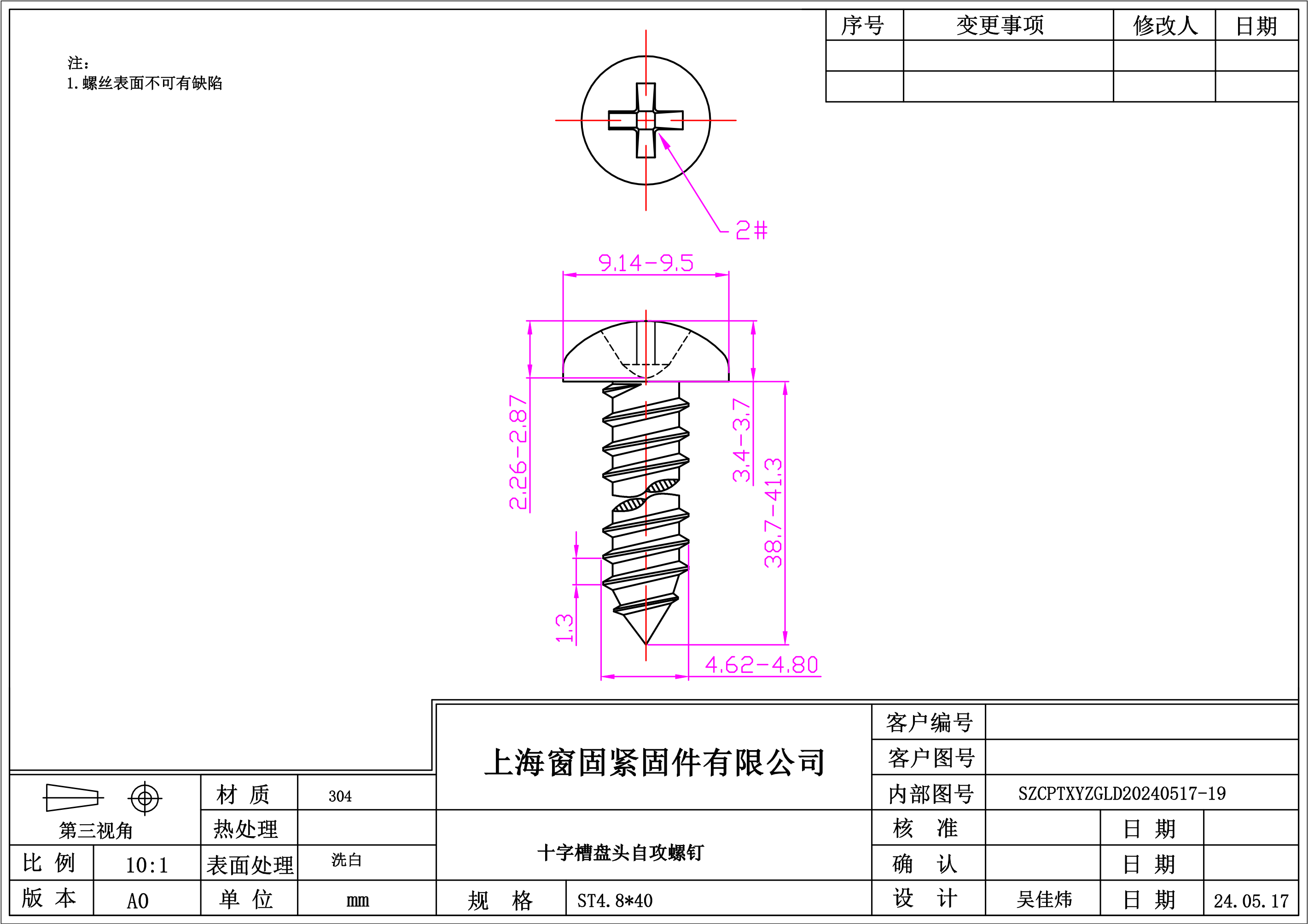 不锈钢304十字盘头自攻螺钉~4.8*40~洗白