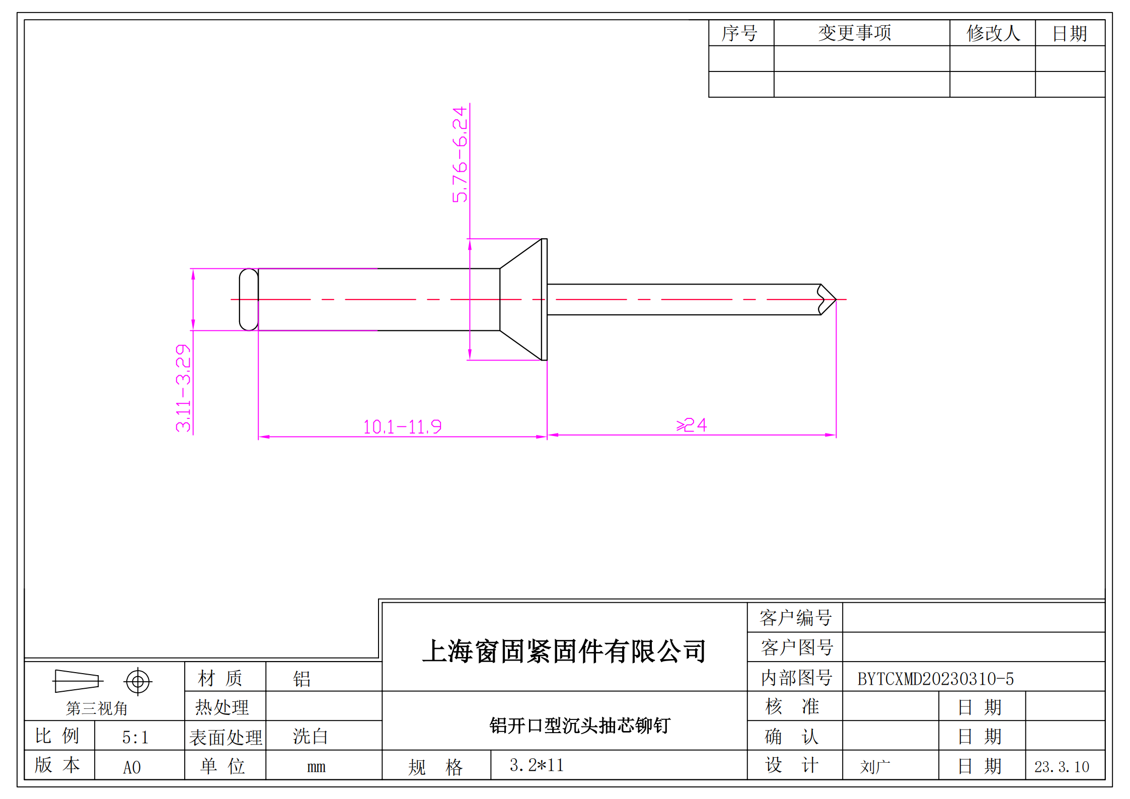 铝沉头抽芯铆钉~3.2*11
