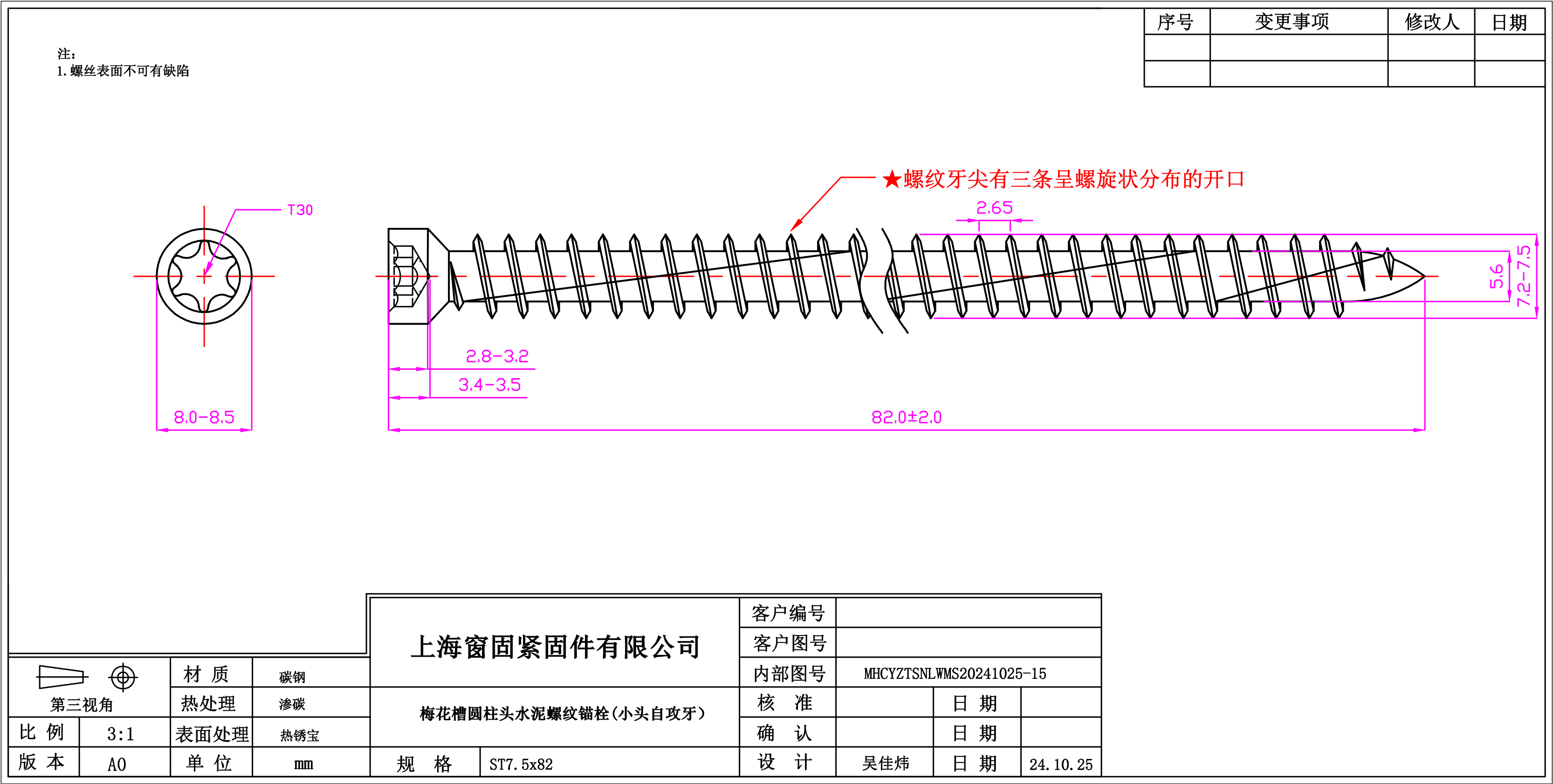 梅花圆柱头水泥螺纹锚栓~7.5*82~热锈宝~(小头,自攻牙)