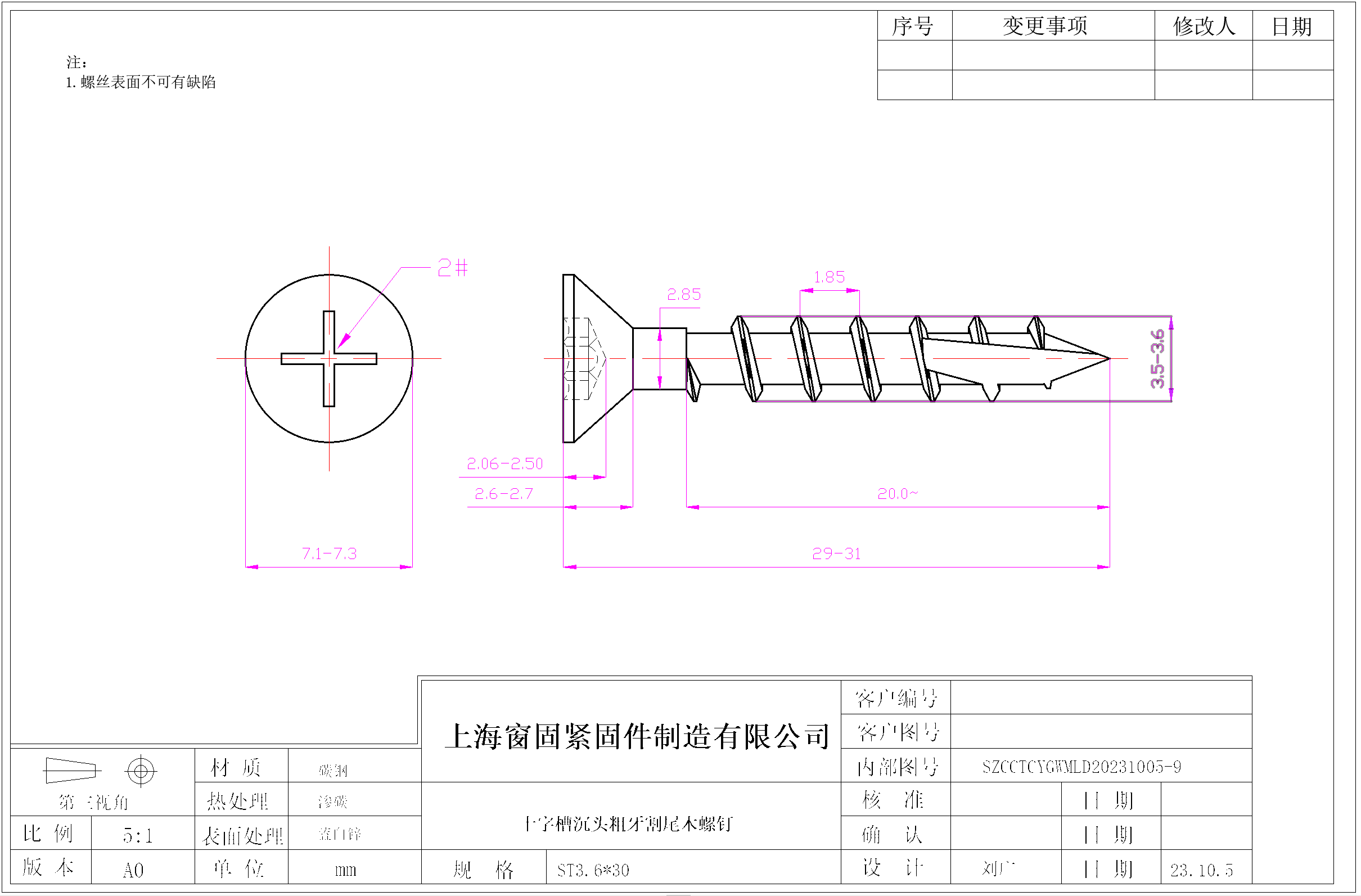 十字盘头细牙自攻螺钉