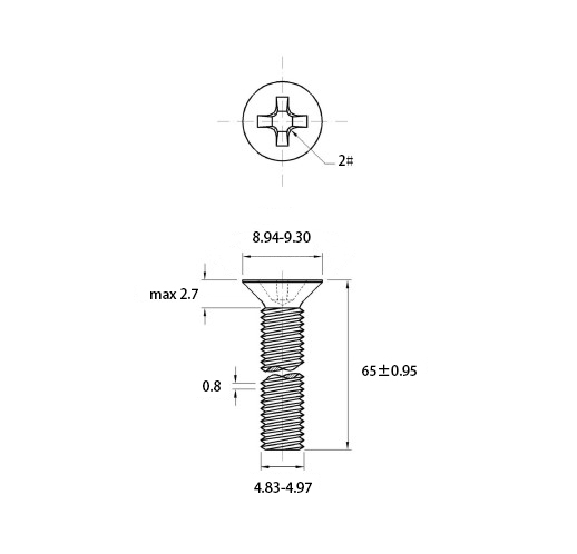 不锈钢410十字沉头机螺钉~5*65~洗白