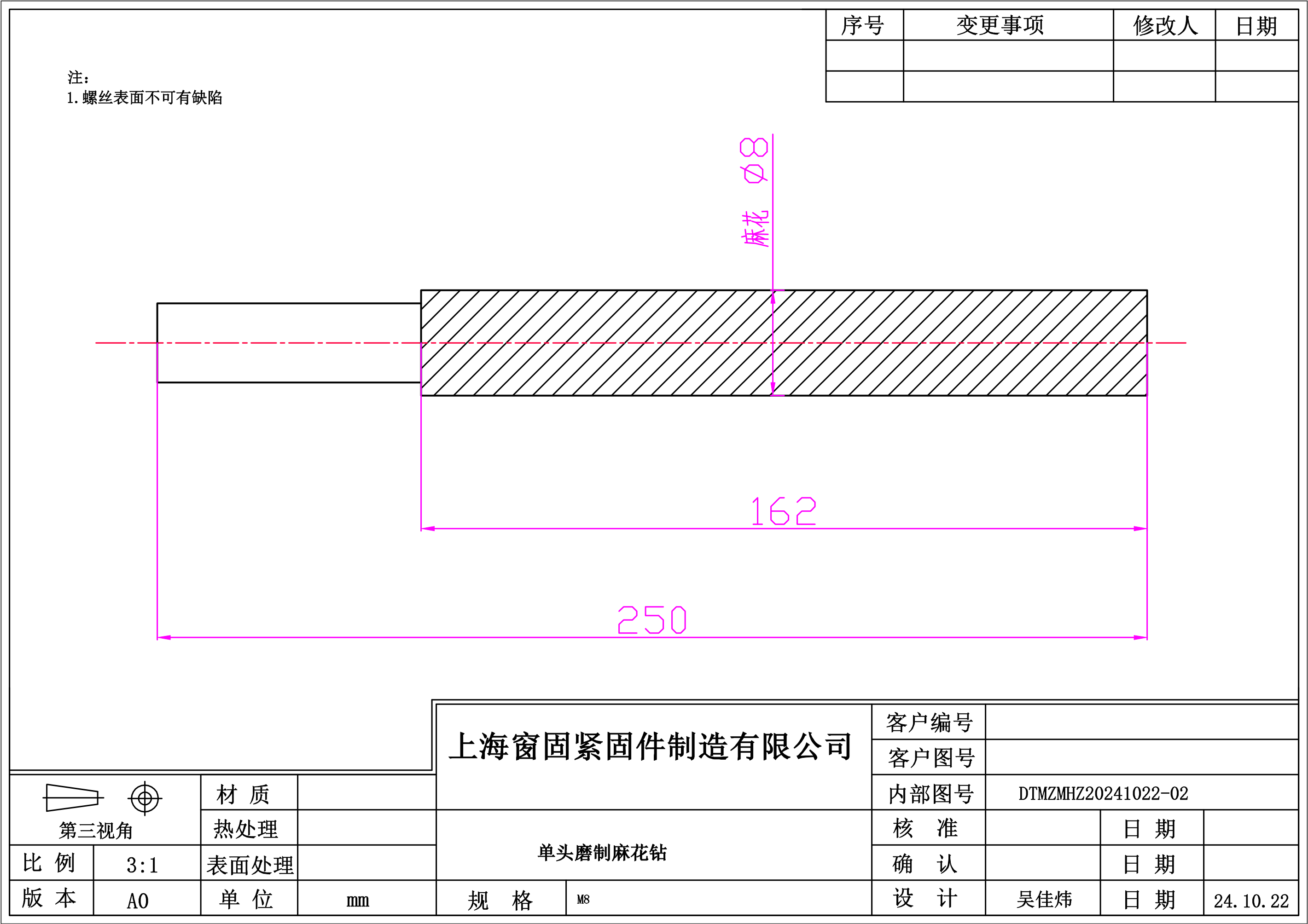 六方柄磨制丝锥