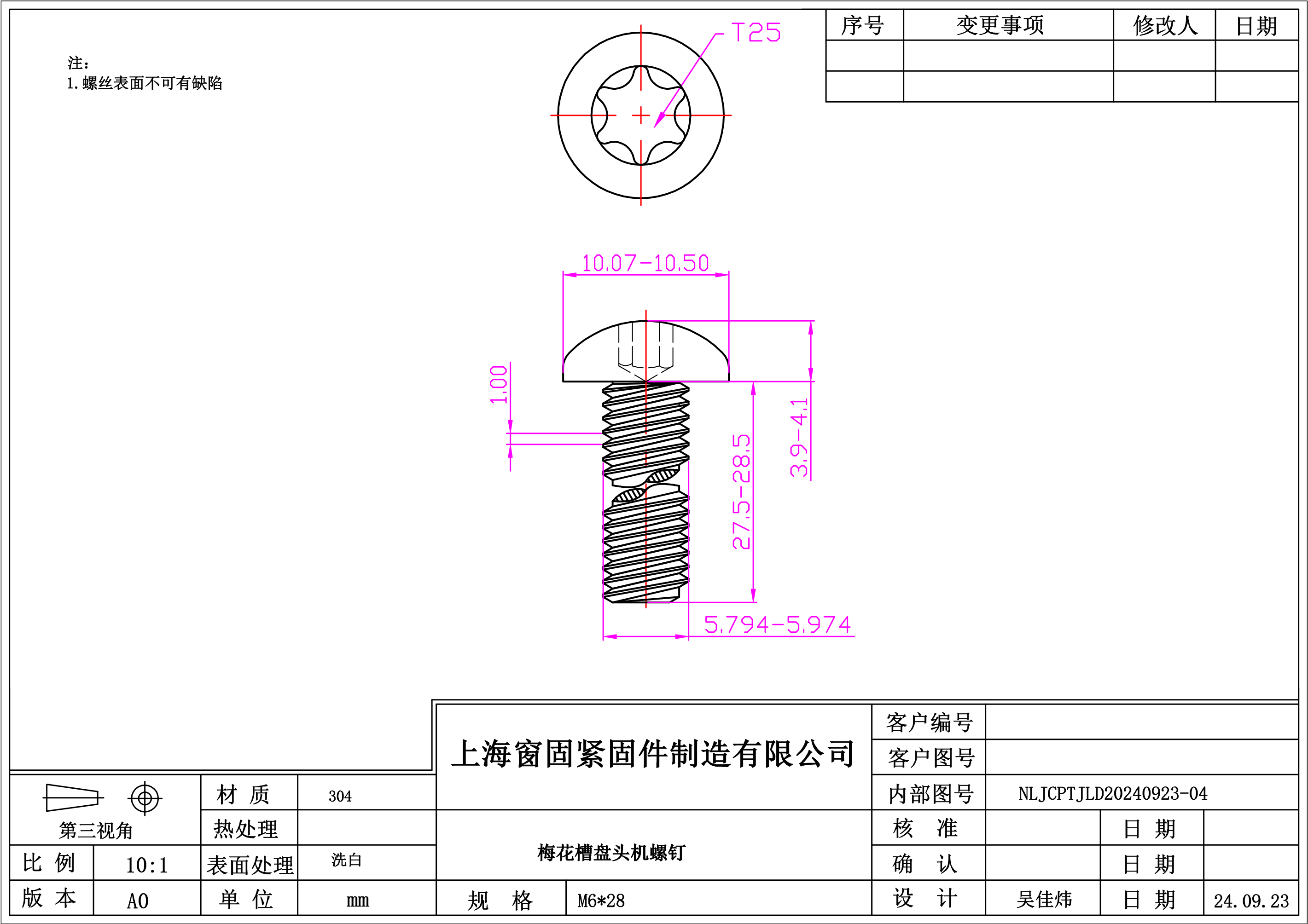 不锈钢304梅花盘头机螺钉~6*28~洗白