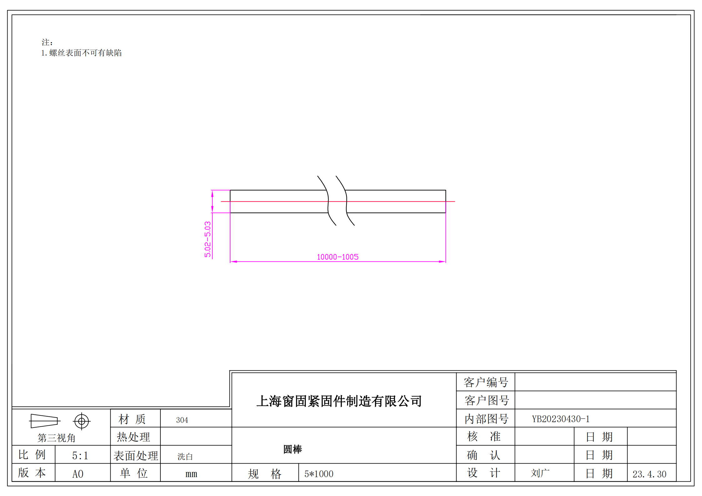 不锈钢304圆棒~5*1000~洗白~(公差0.02-0.03)