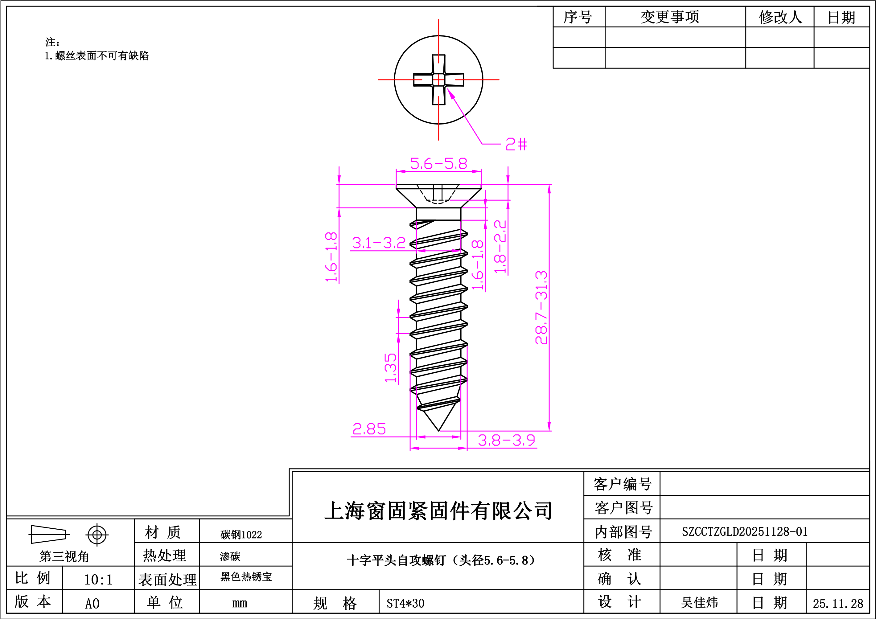 十字沉头自攻螺钉~3.9*30~黑色热锈宝~(头径5.6-5.8)