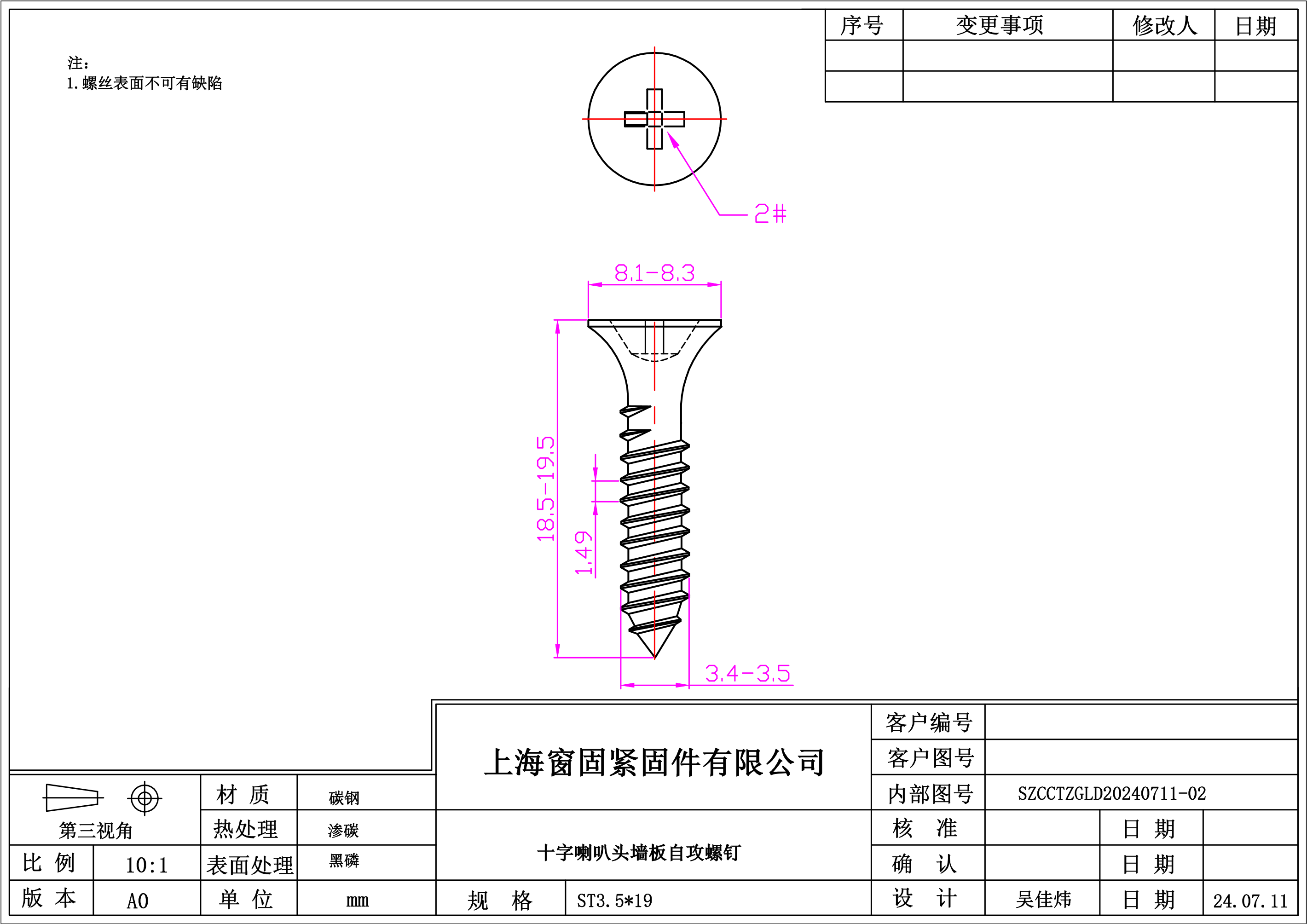 十字喇叭头墙板自攻钉~3.5*19~黑磷