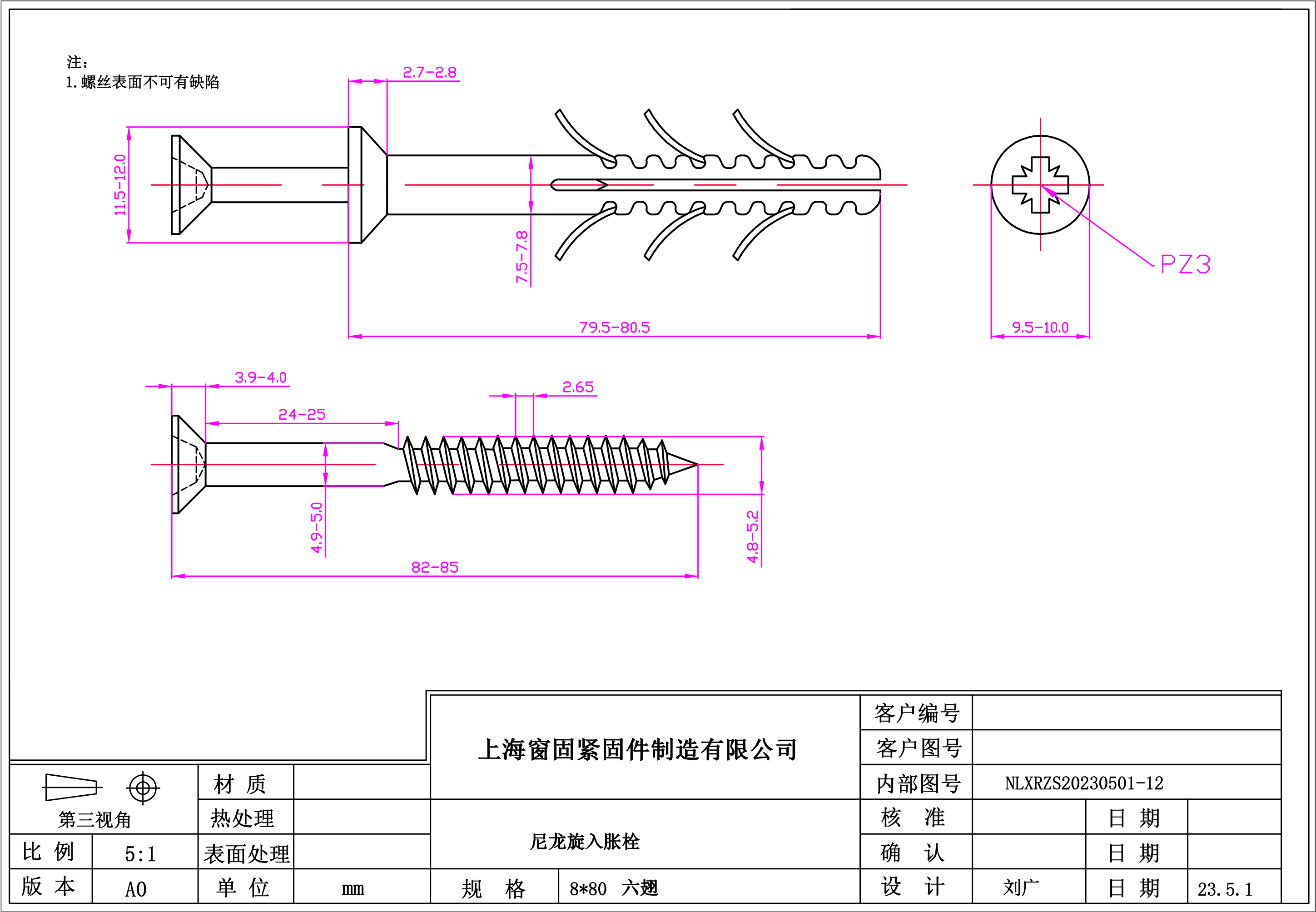 尼龙旋入式胀栓~8*80~(六翅)