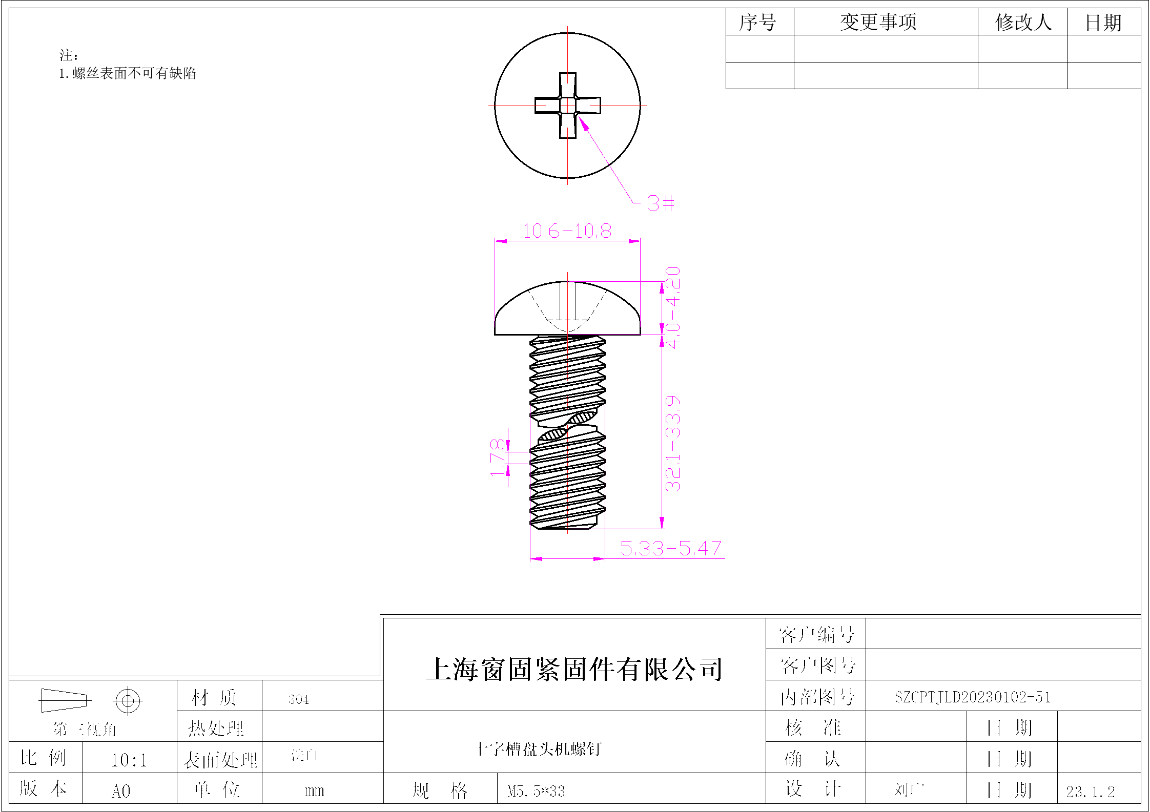 不锈钢304十字盘头机螺钉~5.5*33~洗白