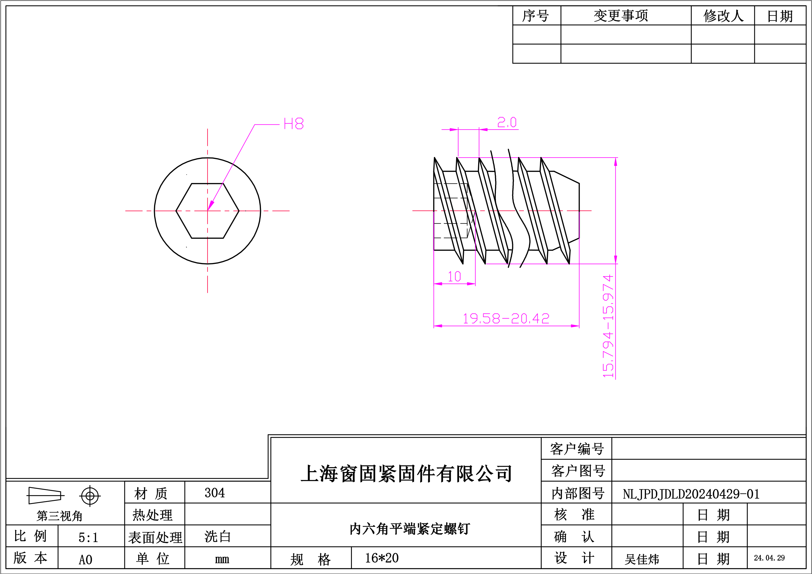 不锈钢304内六角平端紧定螺钉~16*20~洗白