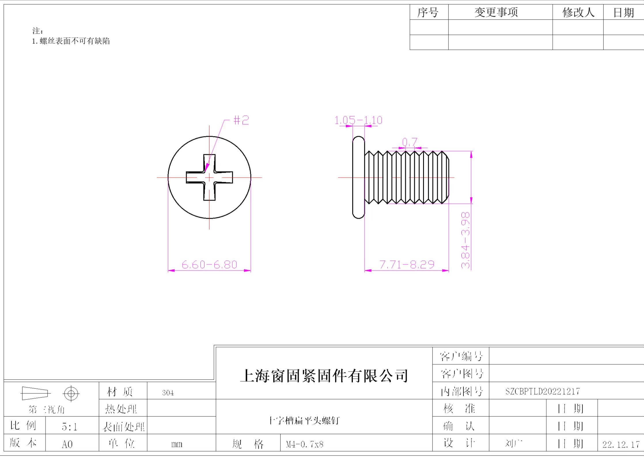 不锈钢304十字扁平头机螺钉~4*8~洗白~(牙距0.7)