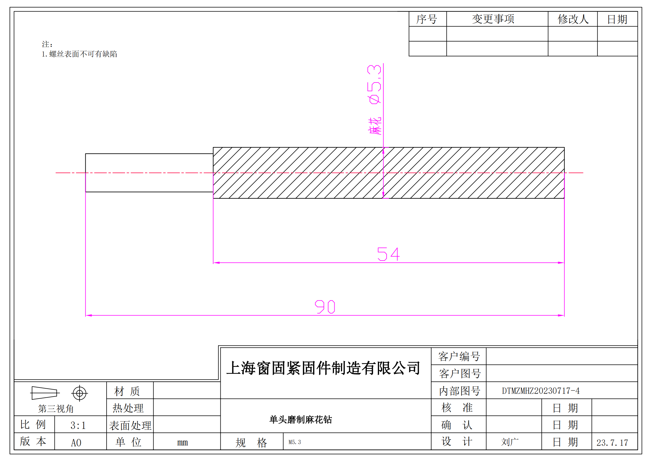 单头磨制麻花钻5.3