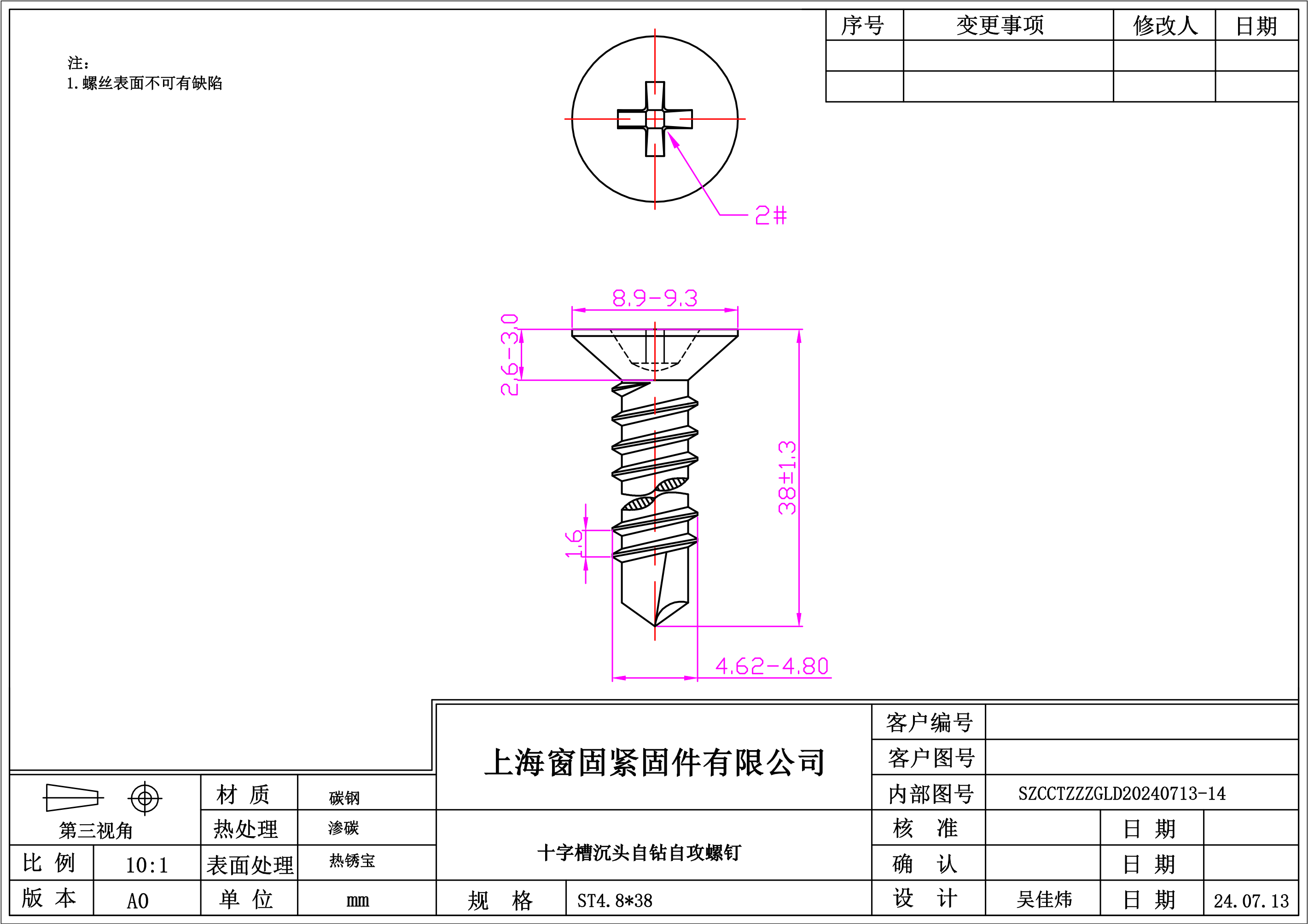 十字沉头自钻自攻螺钉~4.8*38~热锈宝