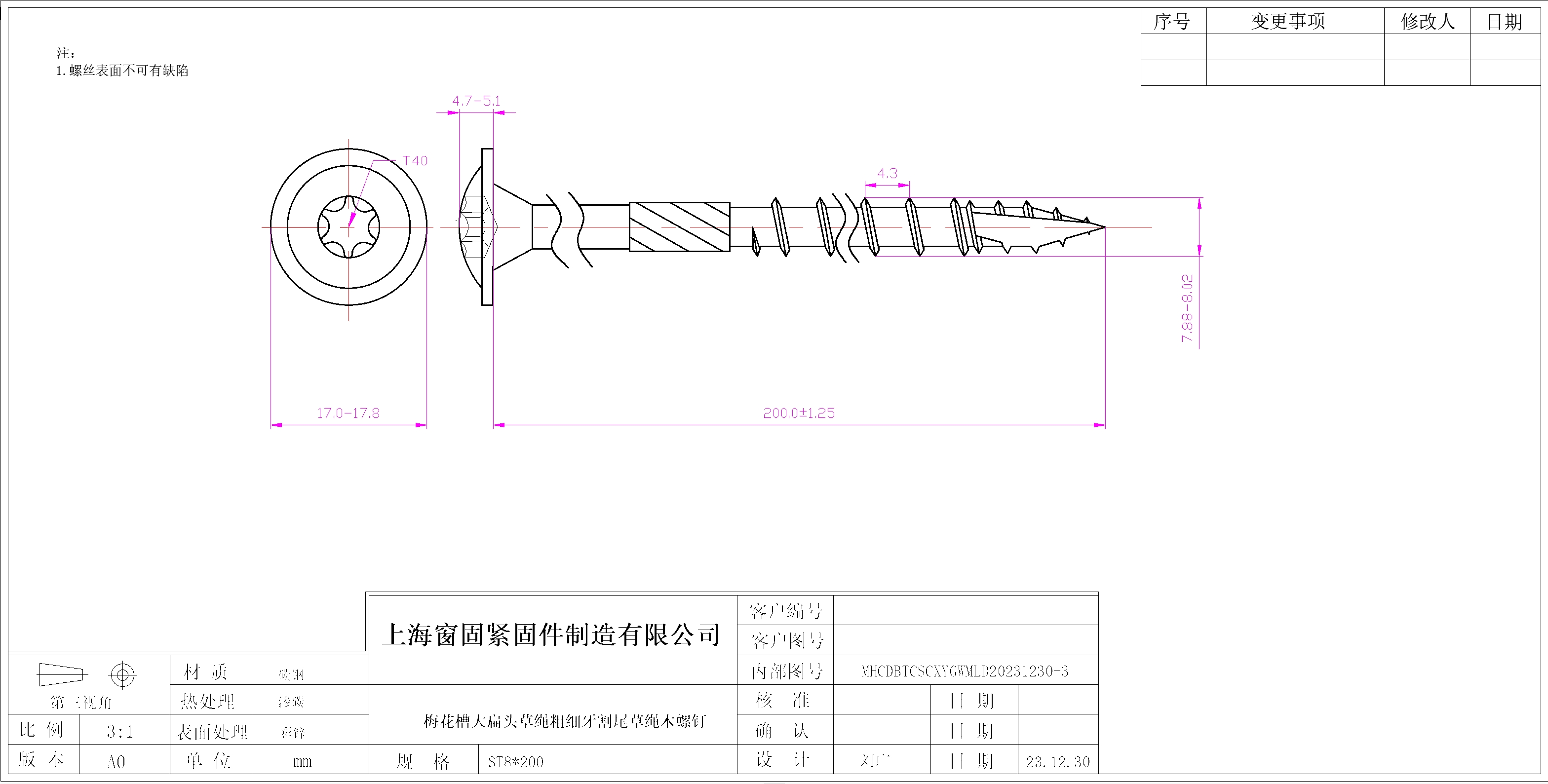梅花扁平头双线割尾自攻螺钉