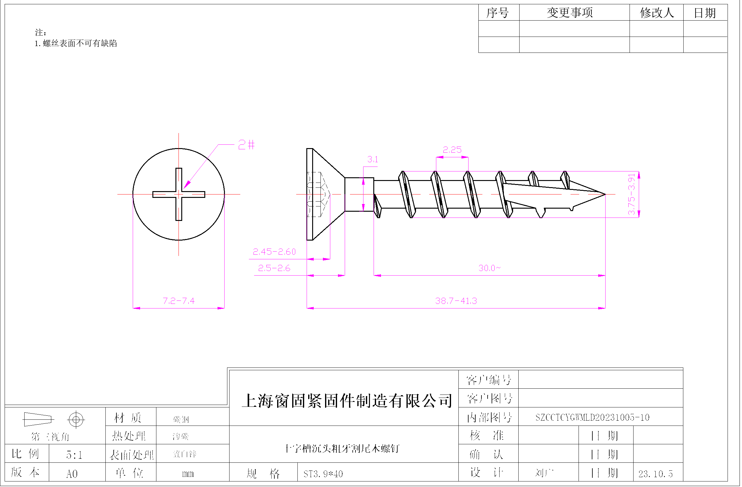 十字沉头细牙锥尾自钻自攻螺钉