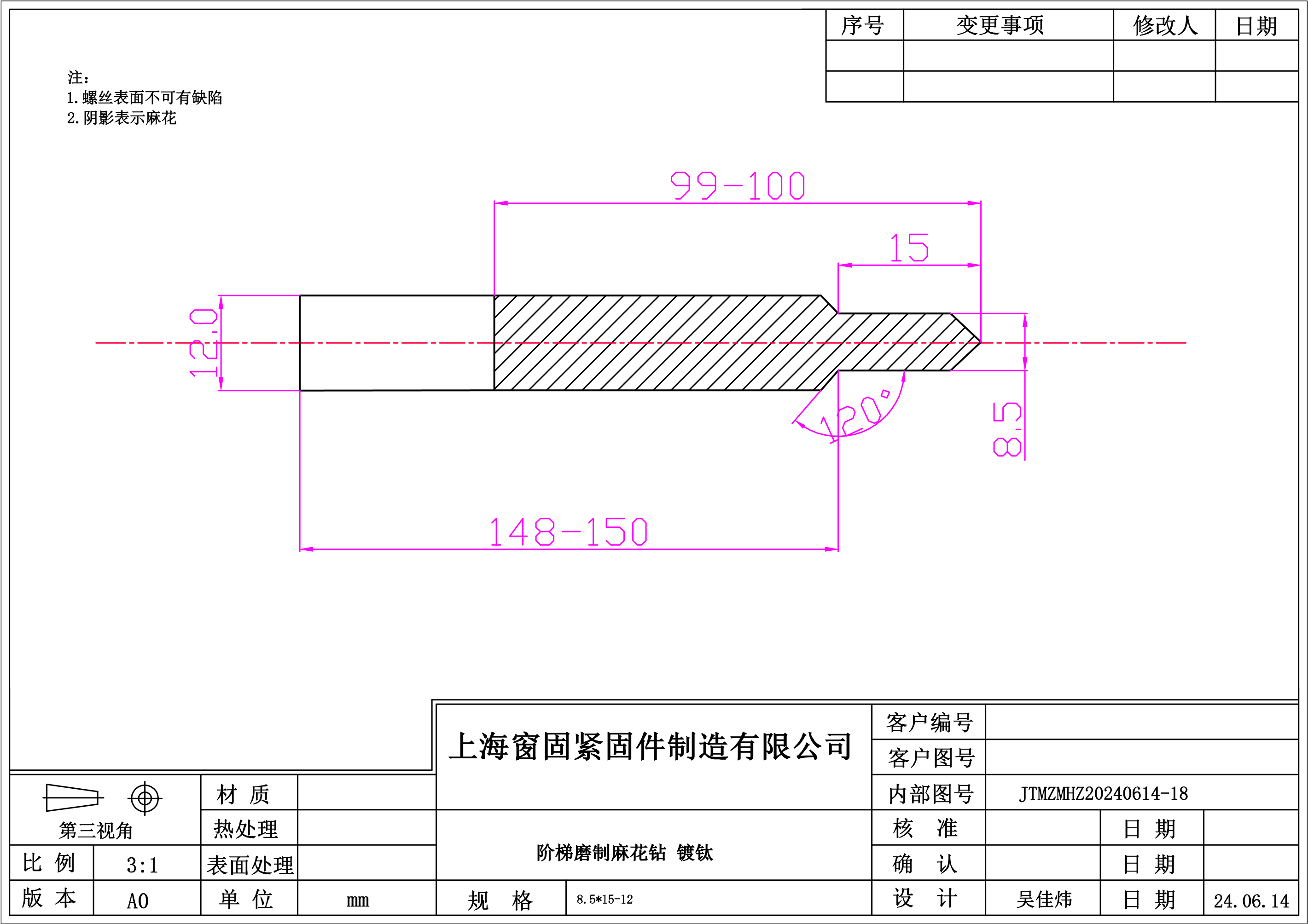阶梯磨制麻花钻8.5*15-12~镀钛