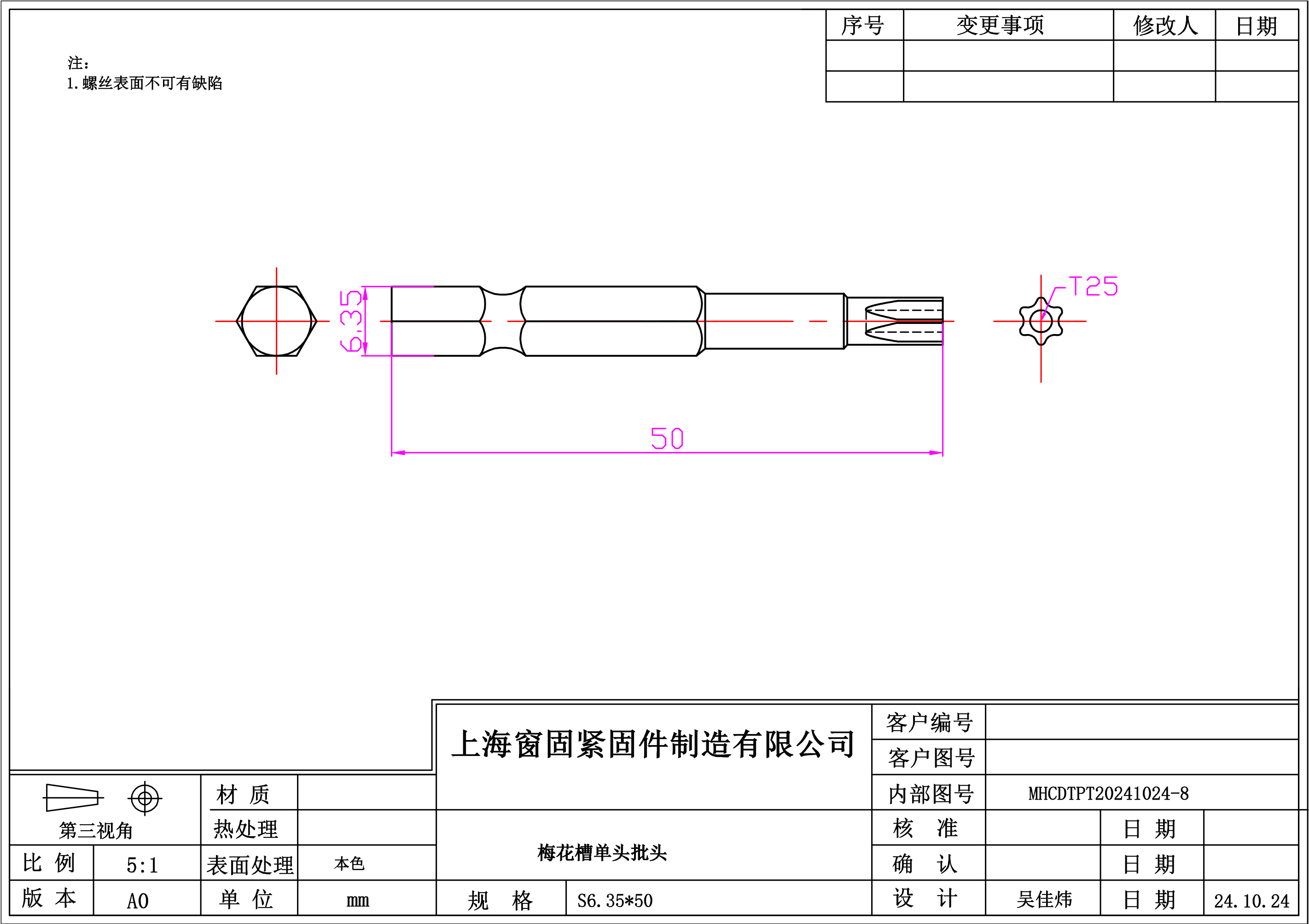 梅花单头批头~S6.35*50~(T25)