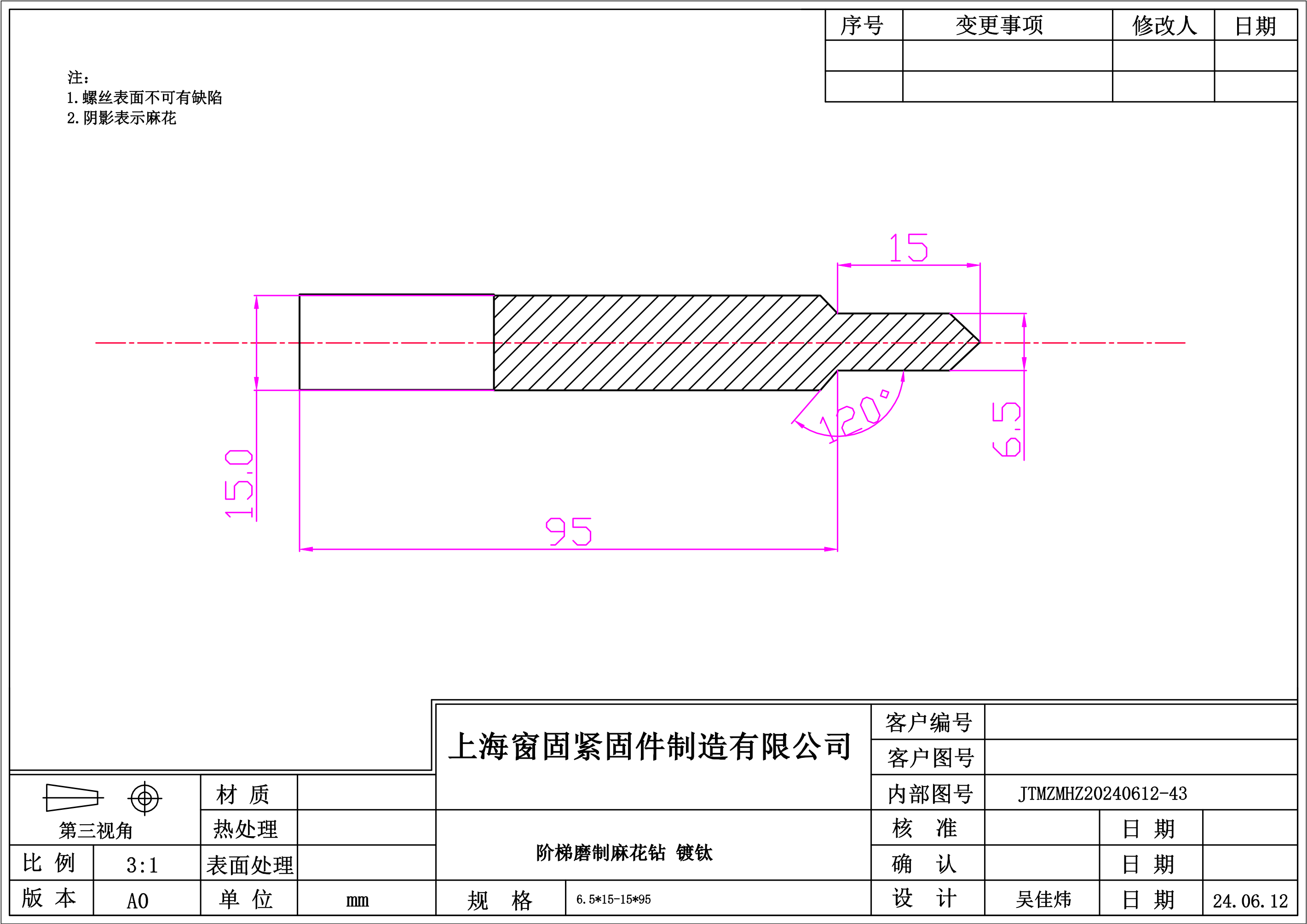 阶梯磨制麻花钻~6.5*15-15*95~镀钛
