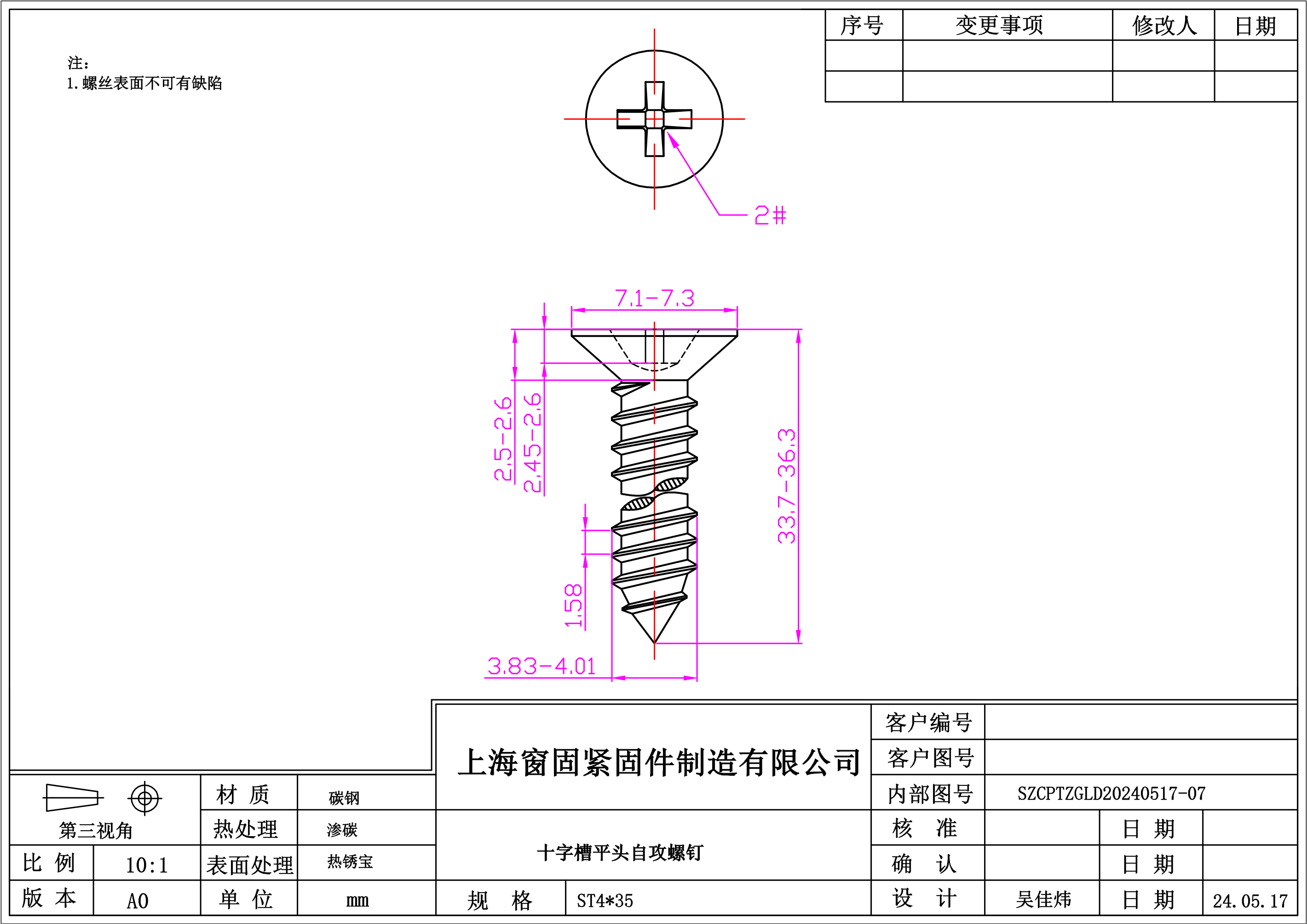 梅花沉头带筋细牙束尾自钻自攻螺钉