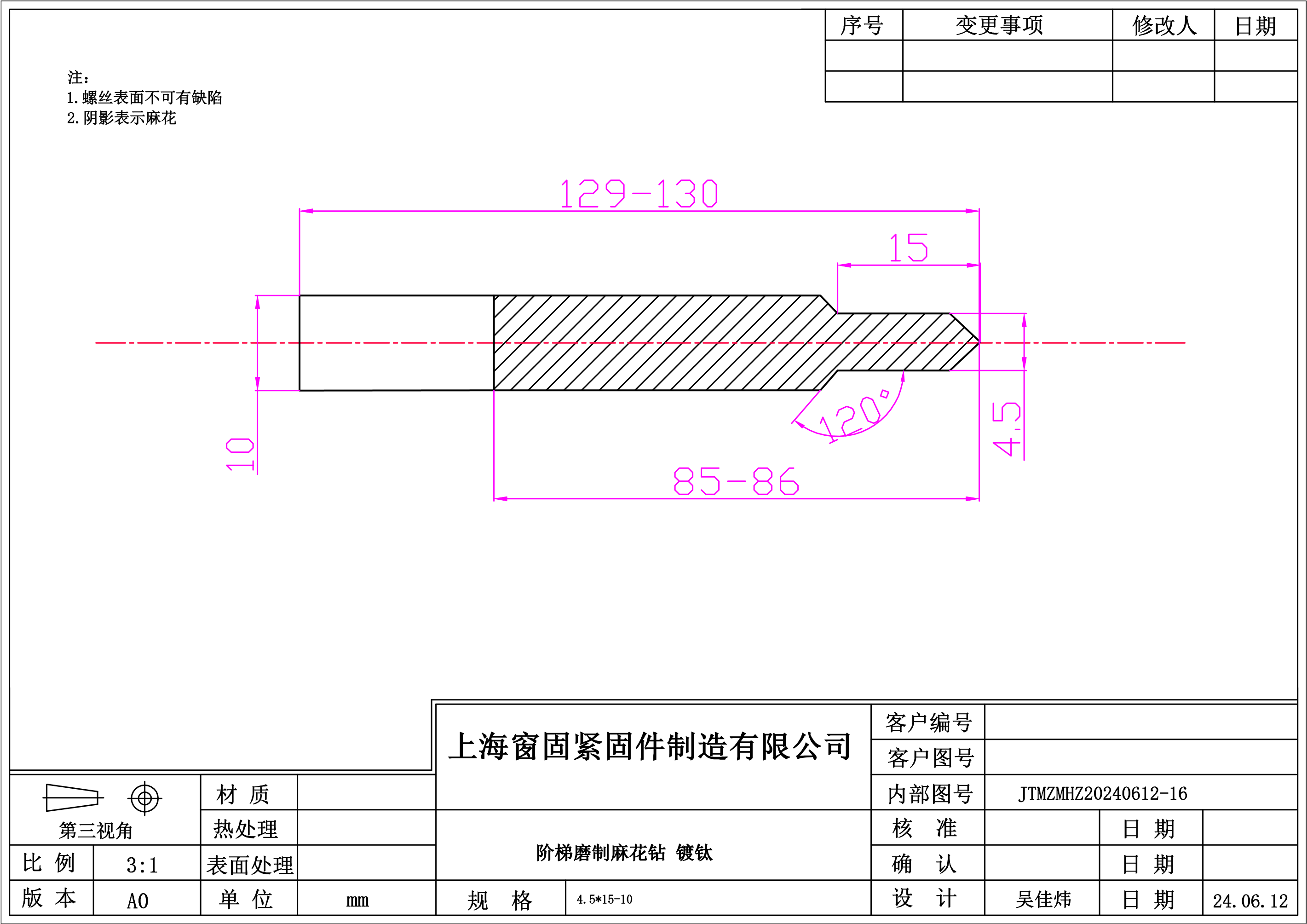 阶梯磨制麻花钻4.5*15-10~镀钛