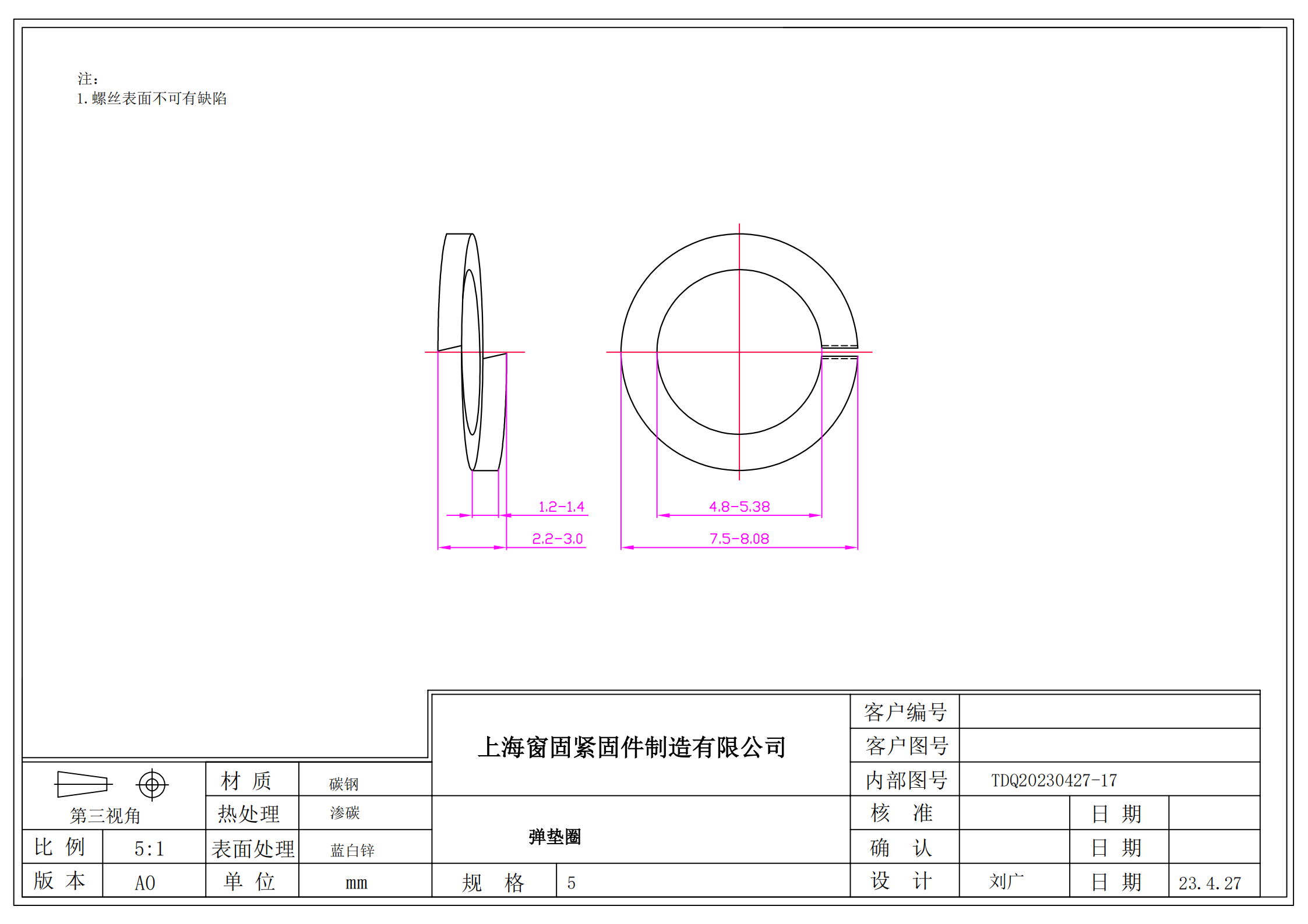 梅花沉头带筋细牙束尾自钻自攻螺钉