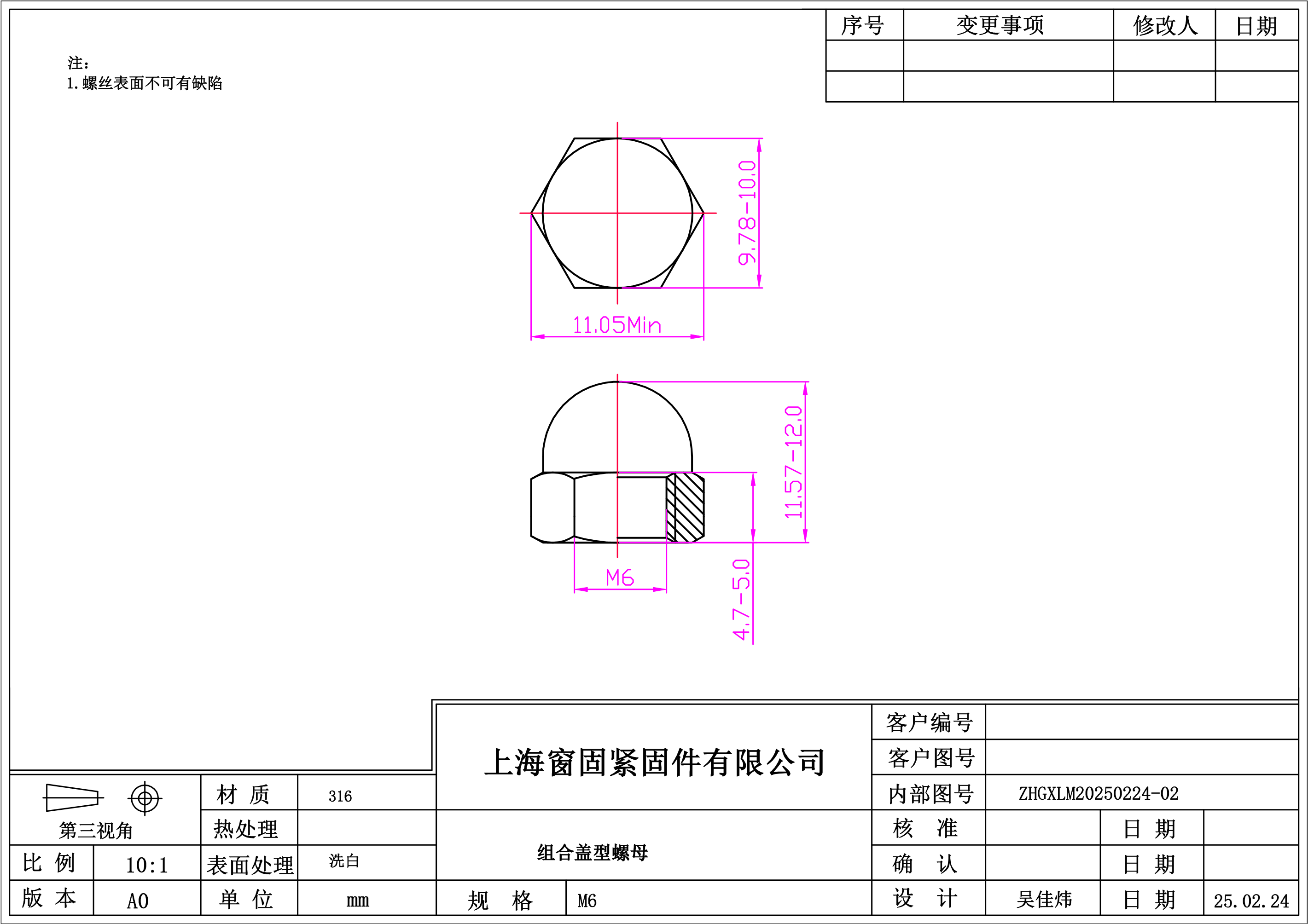 不锈钢316组合盖型螺母6~洗白