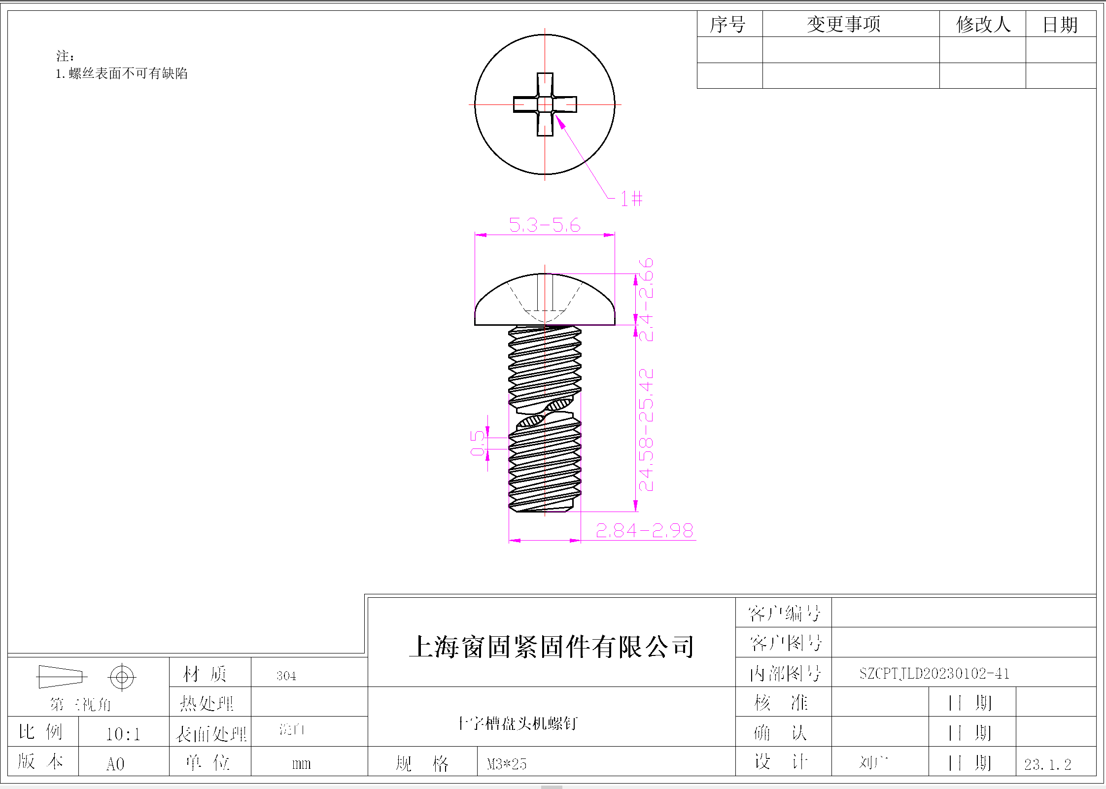 不锈钢304十字盘头机螺钉~3*25~洗白