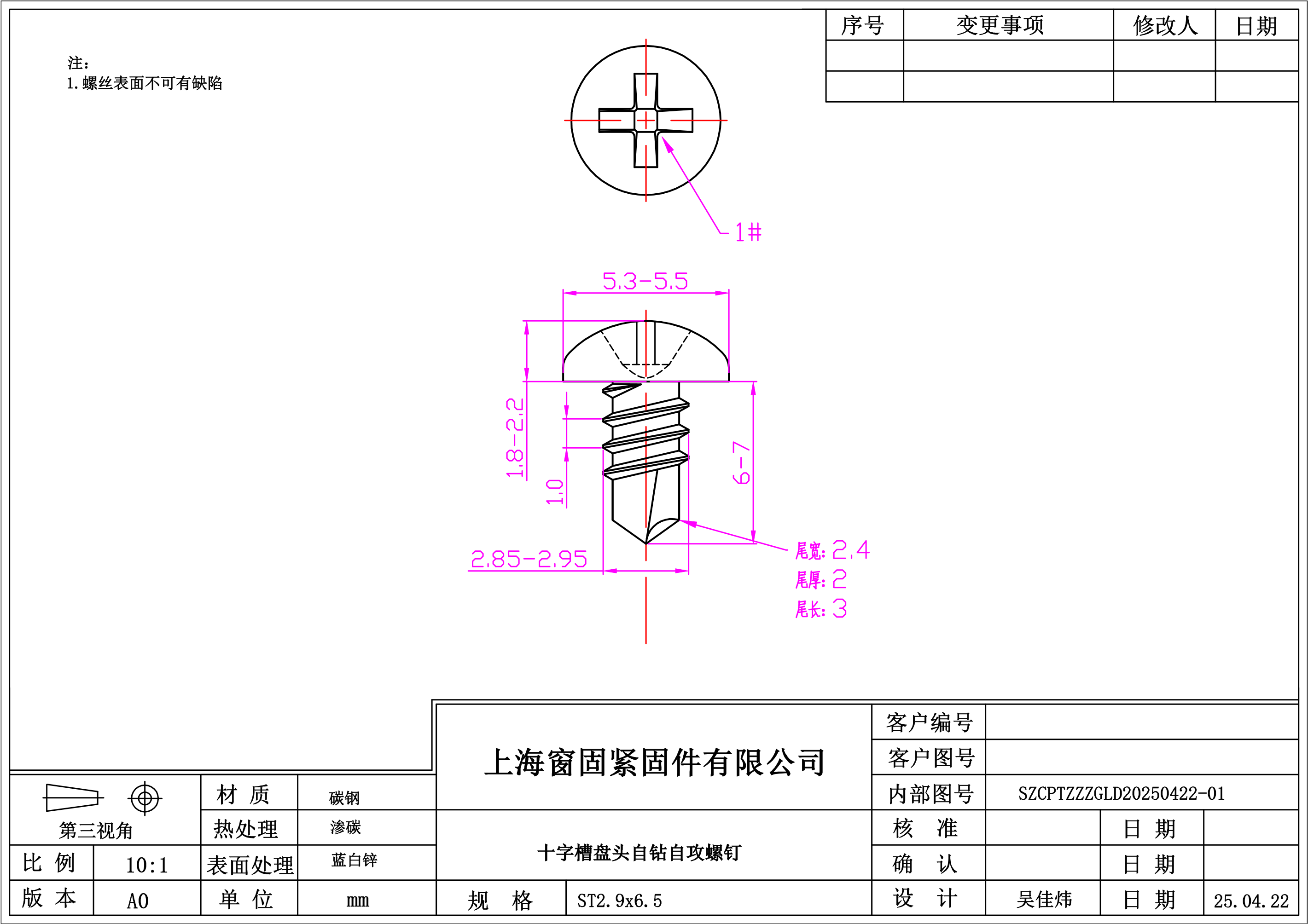 十字盘头自钻自攻螺钉