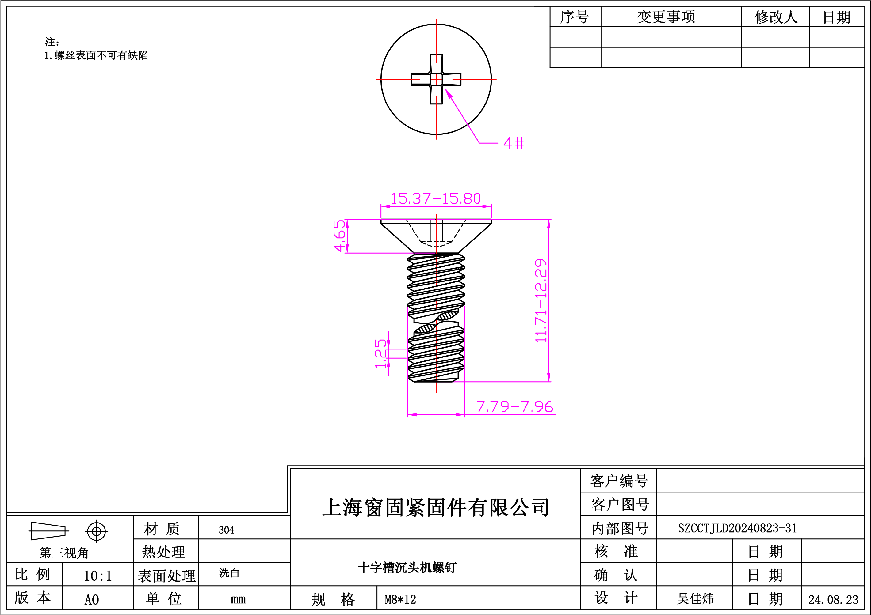 不锈钢304十字盘头机螺钉~8*12~洗白