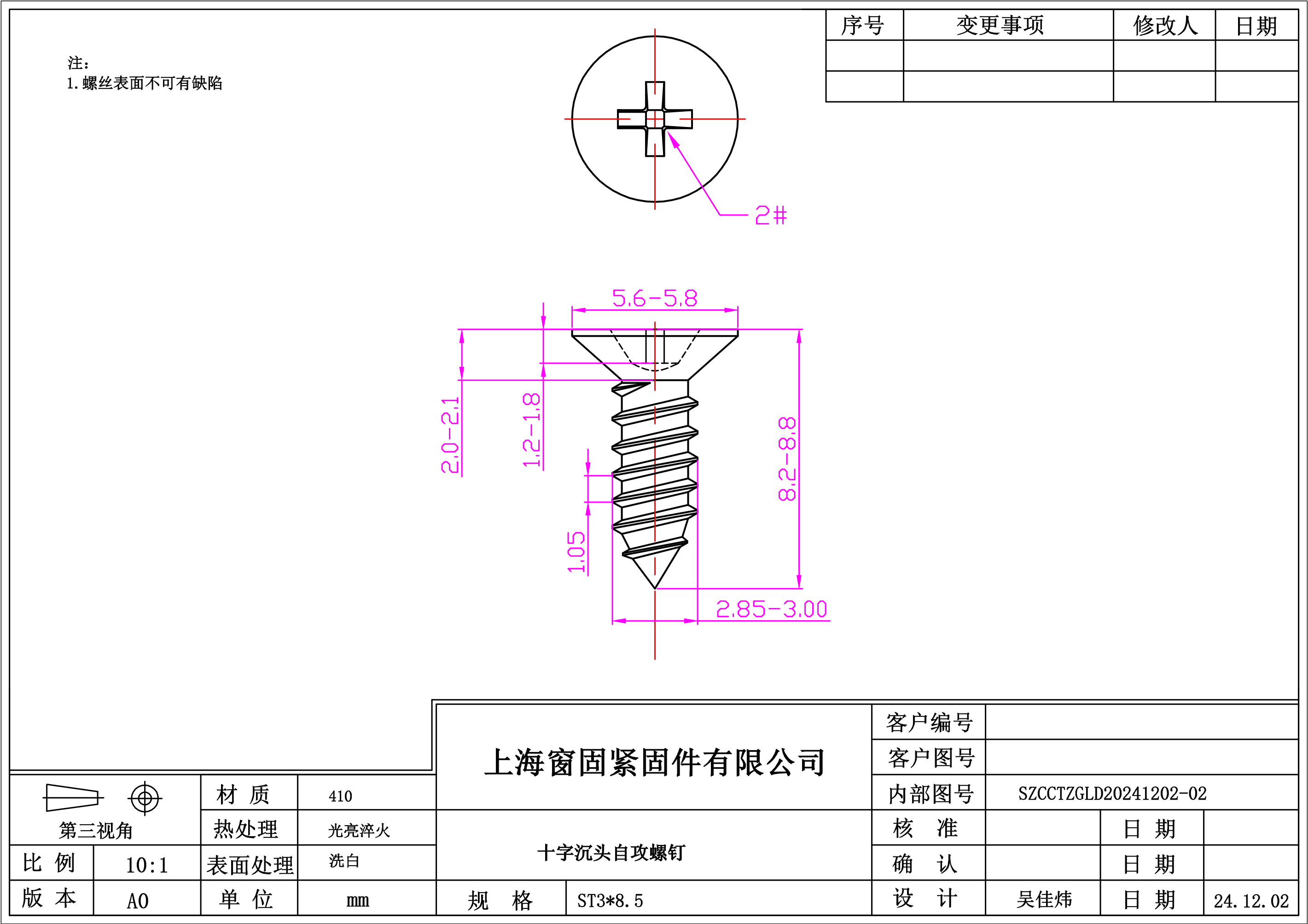 不锈钢410十字沉头自攻螺钉~3*8.5~洗白