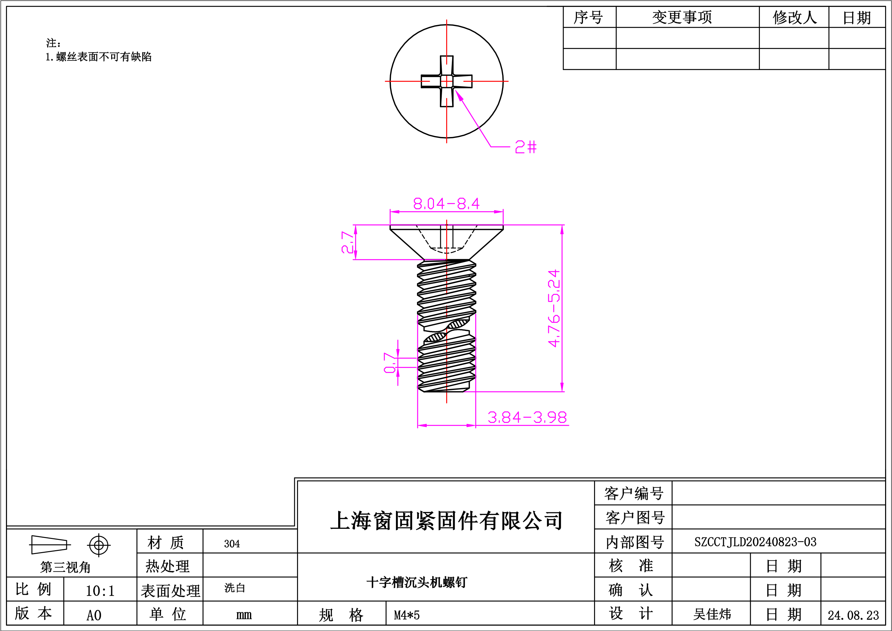 不锈钢304十字沉头机螺钉~4*5~洗白