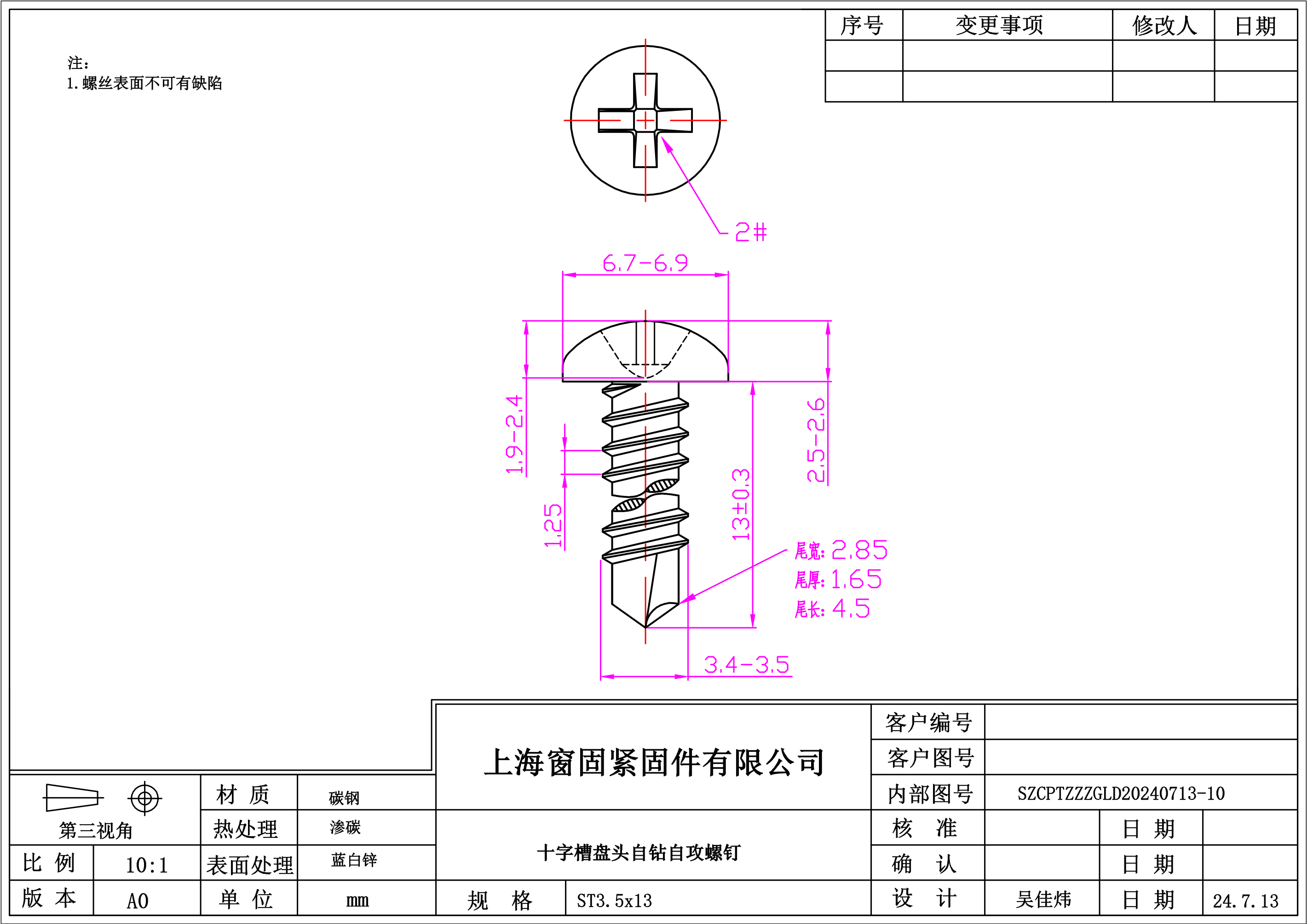 十字盘头自钻自攻螺钉~3.5*13~蓝白锌