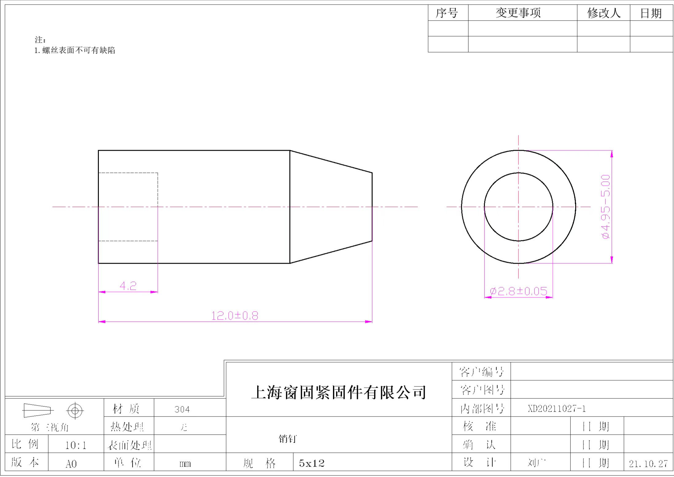 不锈钢304子弹头销~5*12~洗白