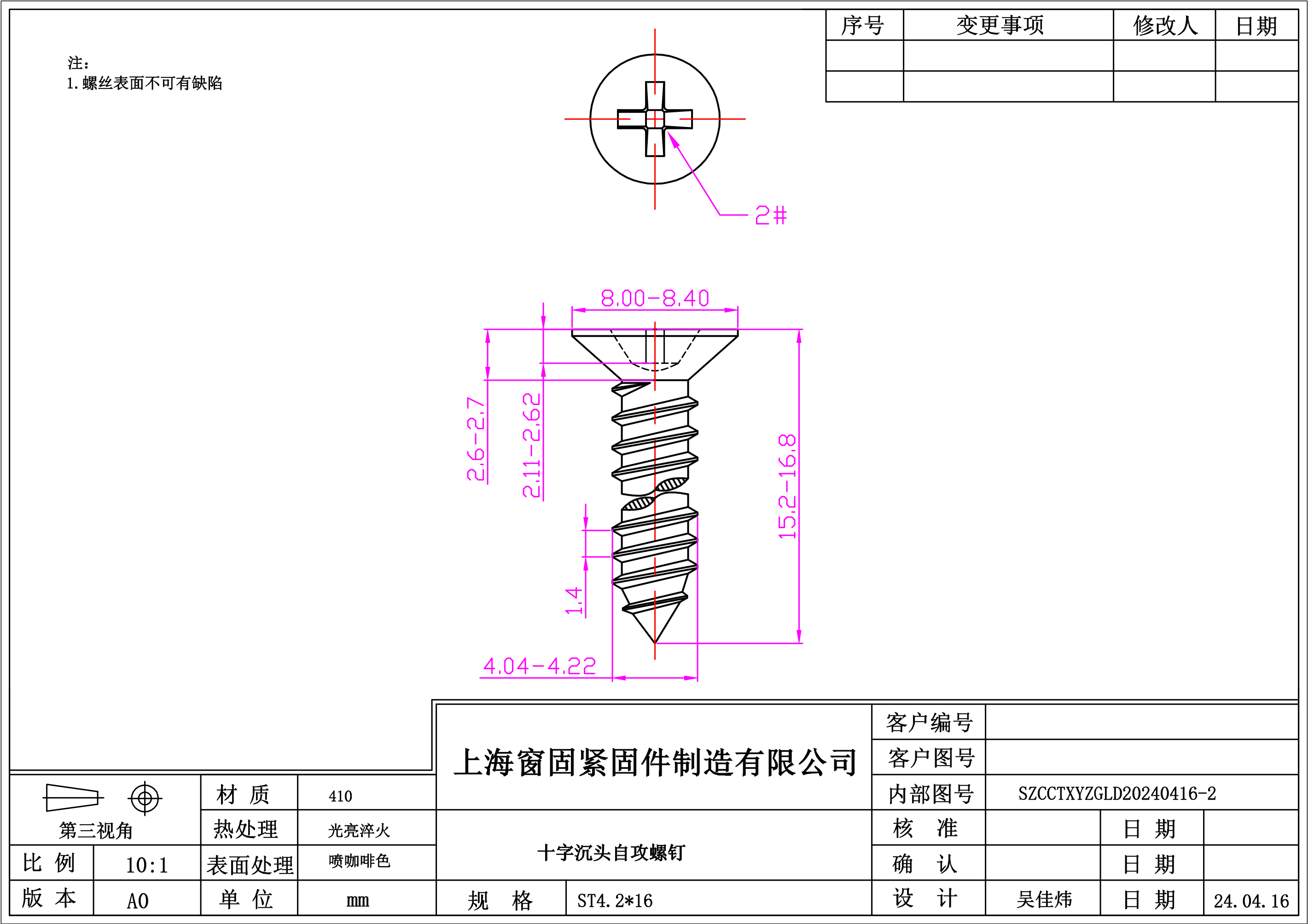 不锈钢410十字沉头自攻螺钉~4.2*16~喷咖啡色头
