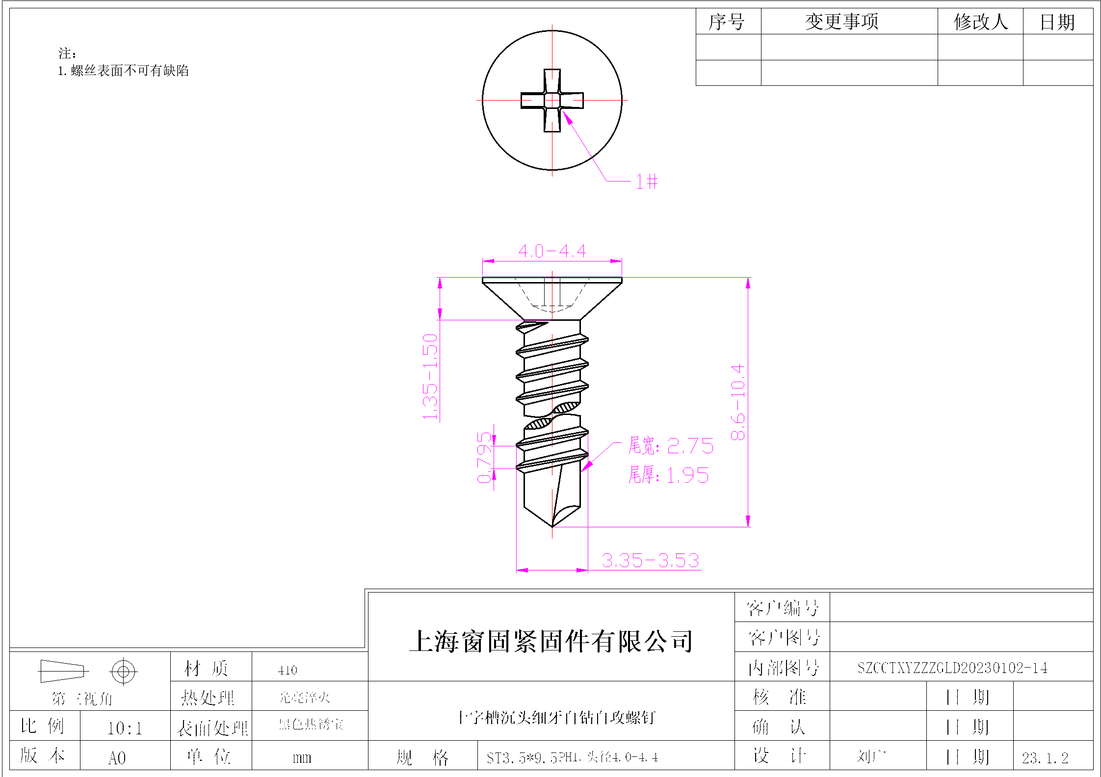 梅花沉头带筋细牙束尾自钻自攻螺钉