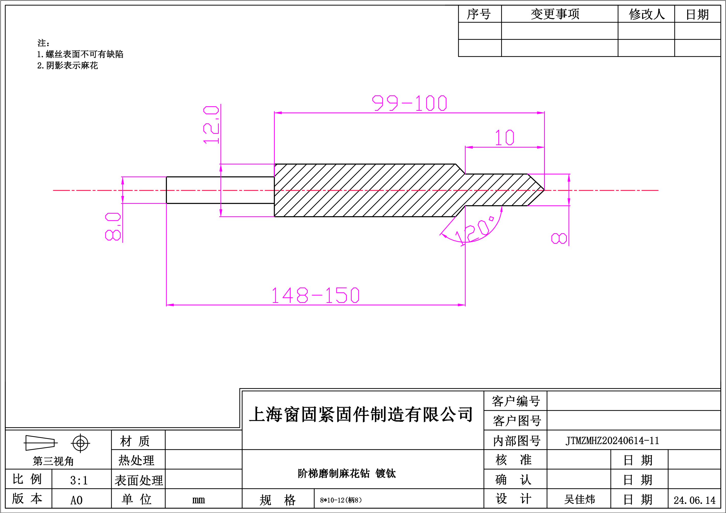 阶梯磨制麻花钻~8*10-12~镀钛~(柄8)