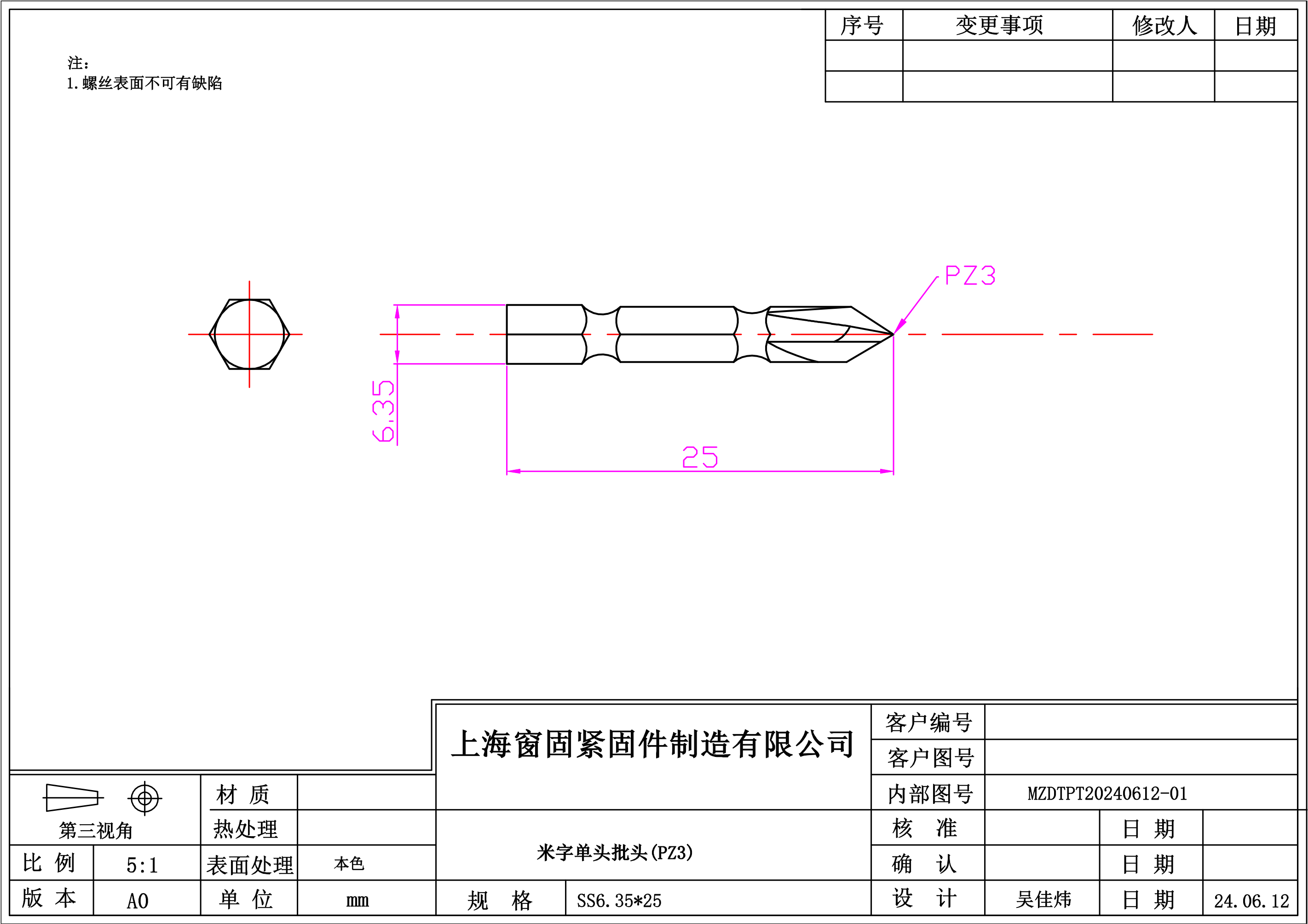 内六角单头批头