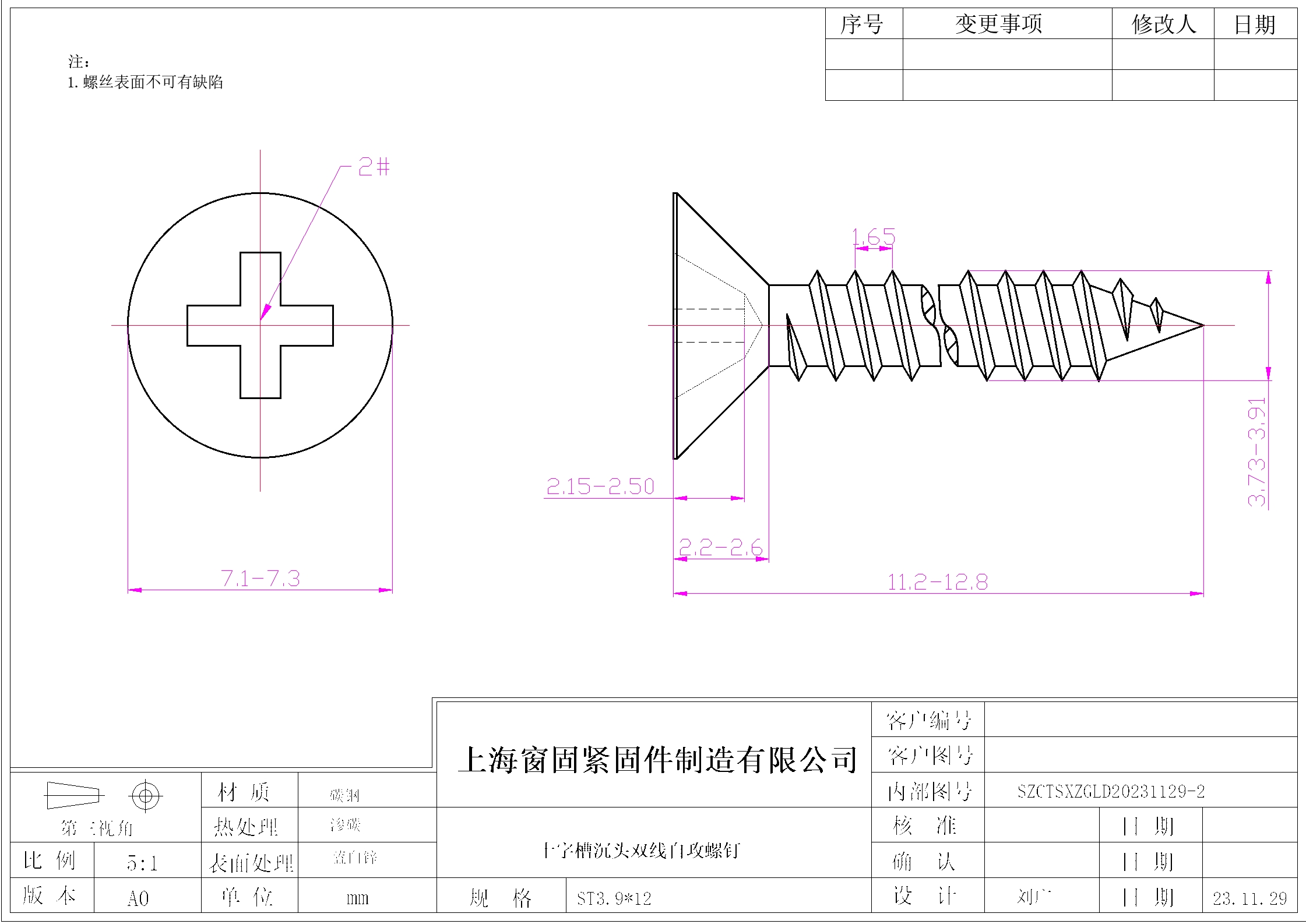 梅花沉头带筋细牙束尾自钻自攻螺钉
