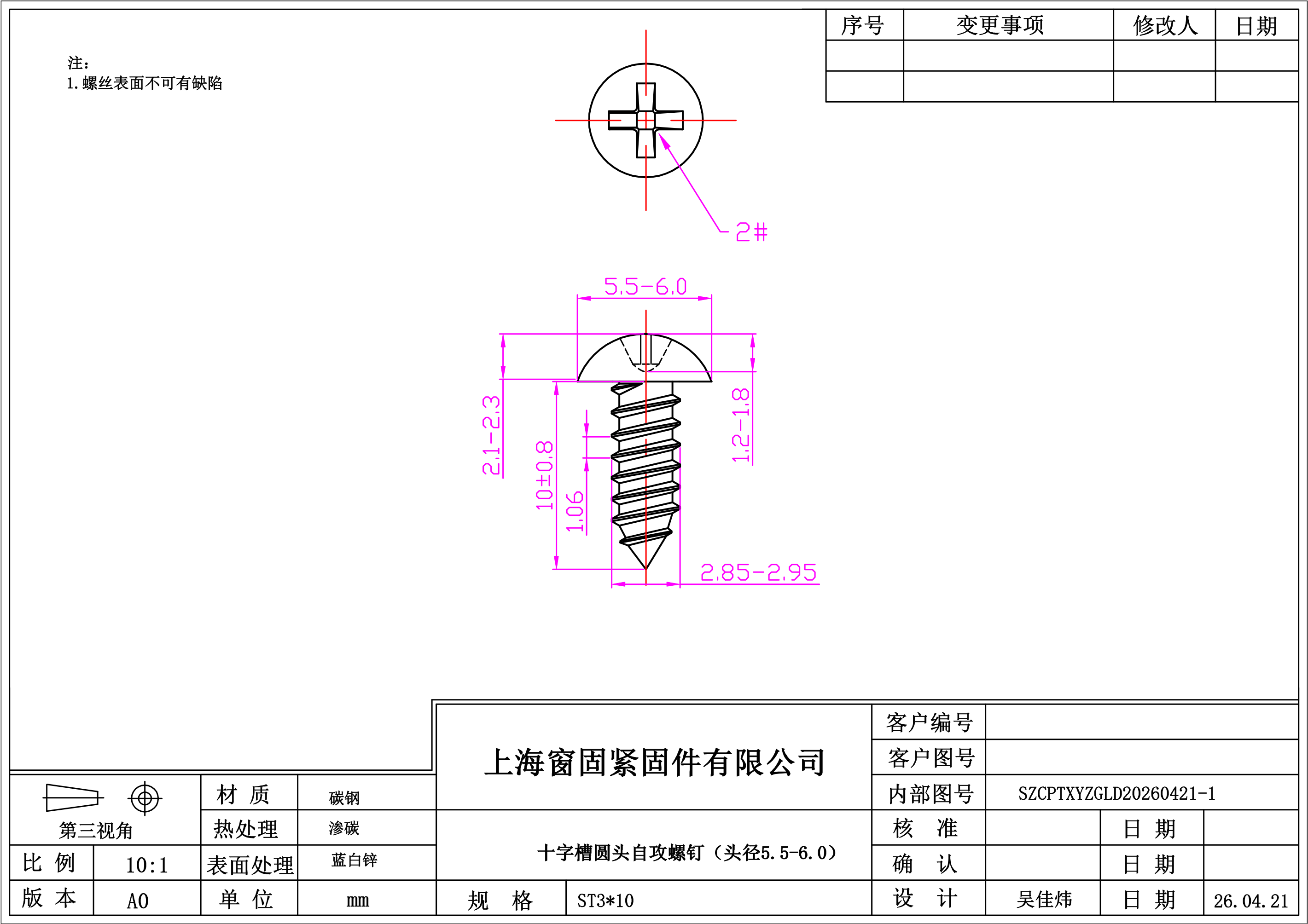 十字圆头自攻螺钉~3*10~蓝白锌~(头径5.5-6.0)