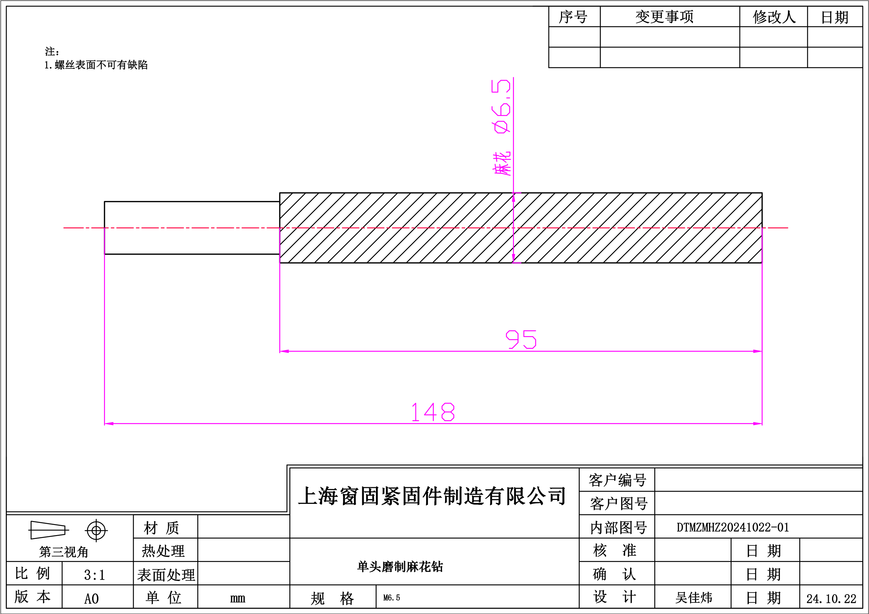 单头磨制麻花钻~6.5*148