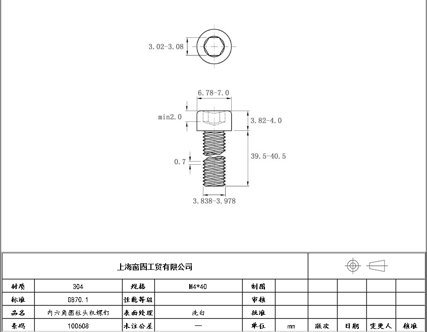 不锈钢304内六角圆柱头机螺钉~4*40~洗白