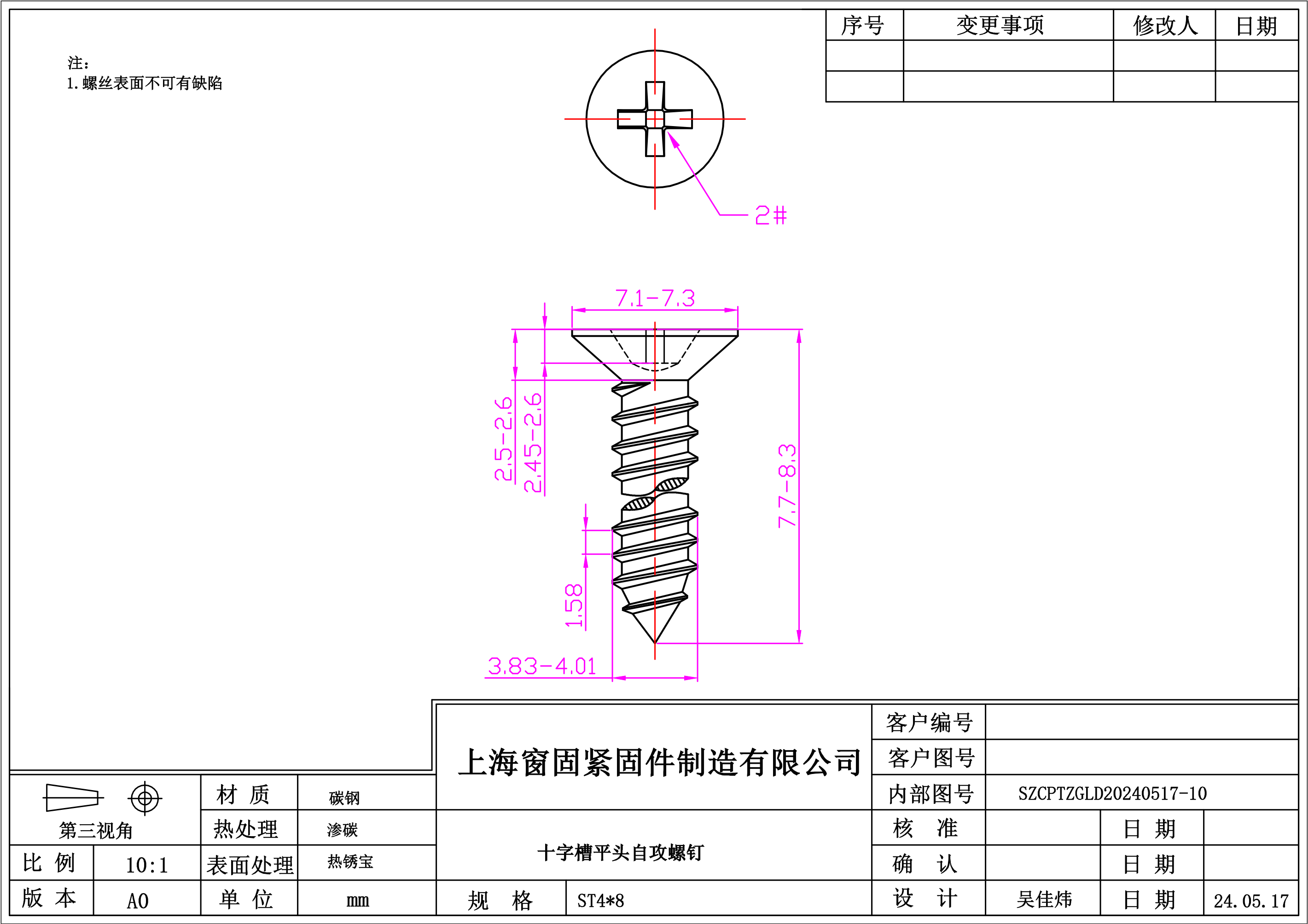 梅花沉头带筋细牙束尾自钻自攻螺钉